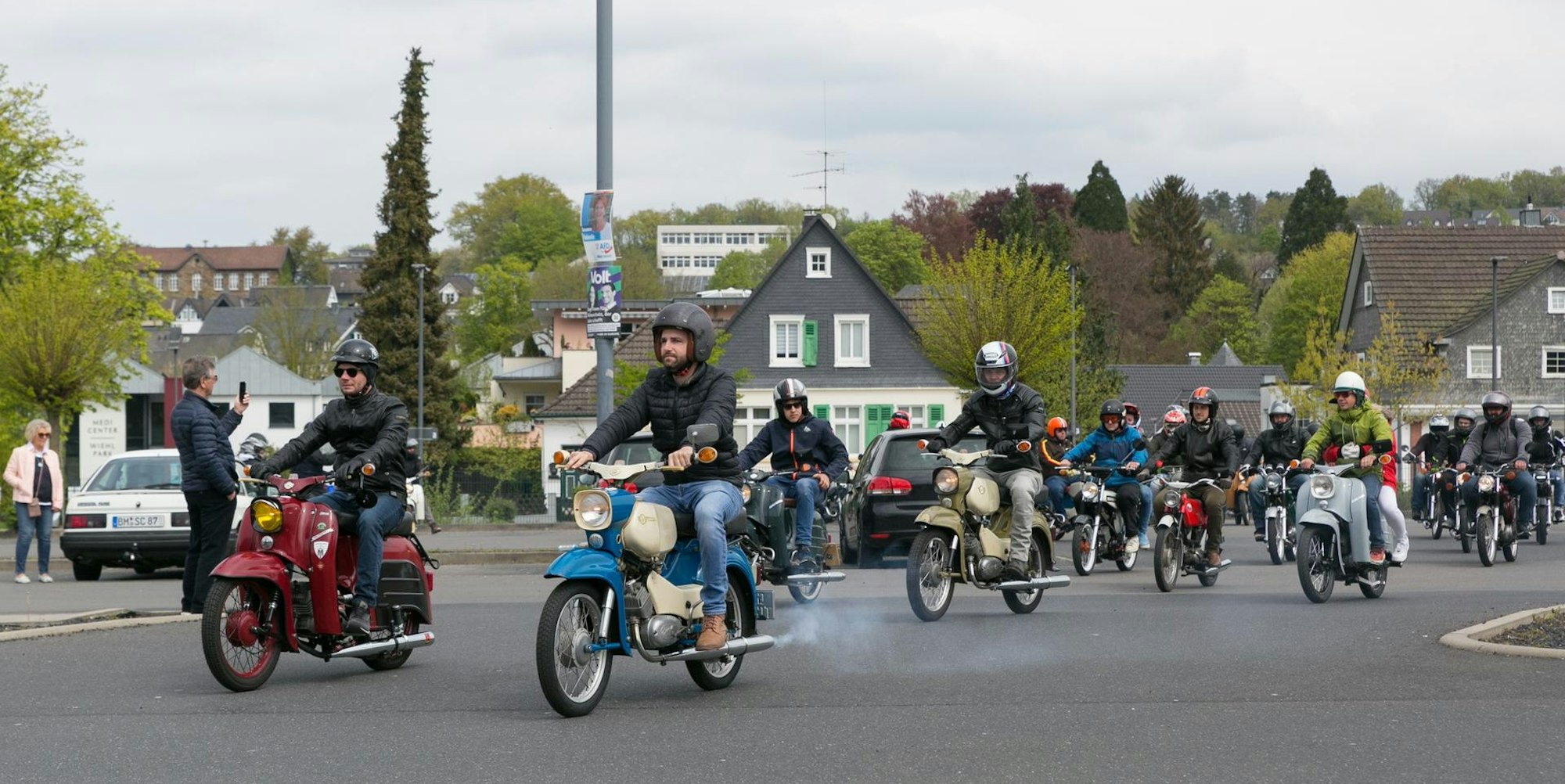 Treffen der Moped-FansSimson-Begeisterte fahren durch Wiehl