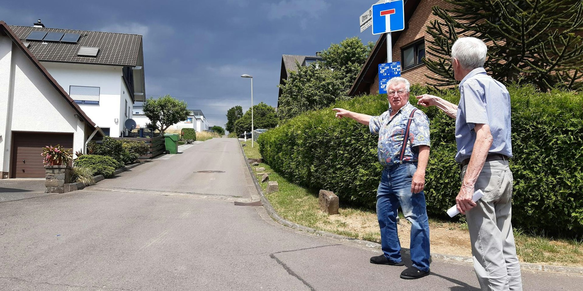 Die Anwohner Gerd Stähler (r.) und Dieter Hanke hoffen auf eine Lösung des Verkehrsproblems an der Otto-Dick-Straße.