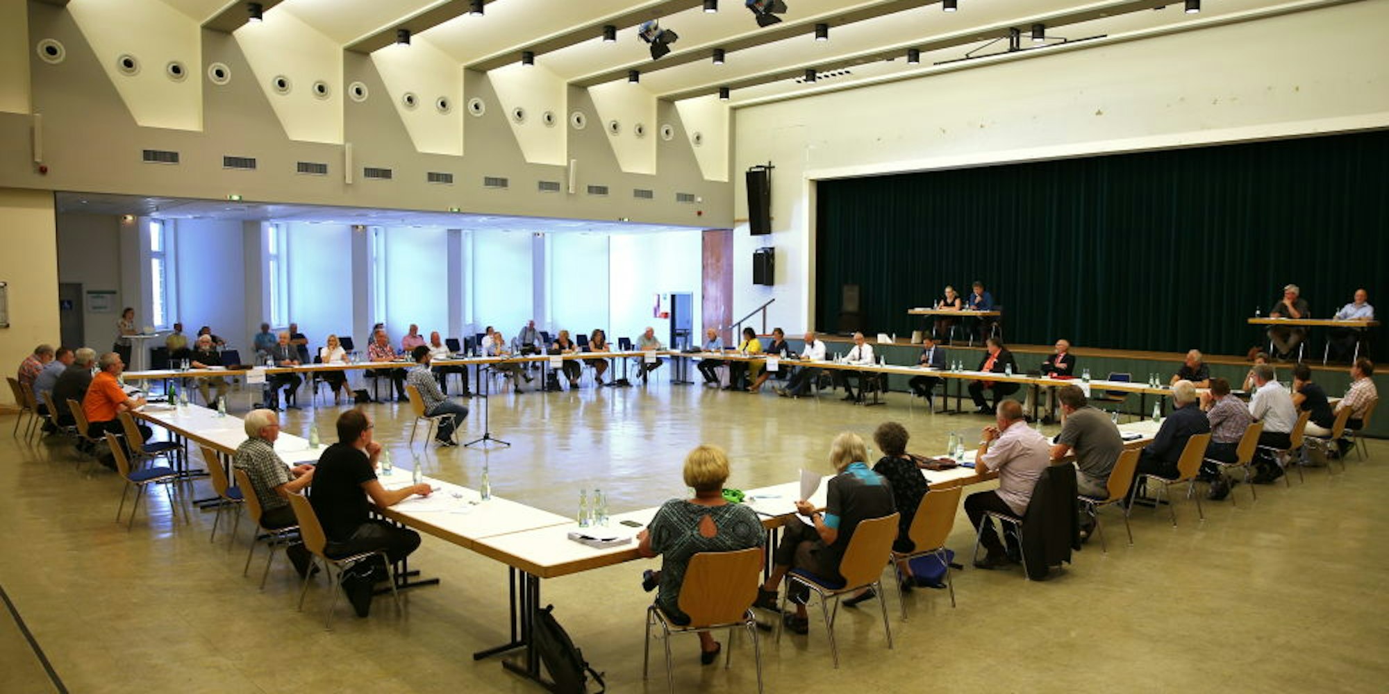 Beratung vor Ort: Wegen des Corona-Abstandsgebots tagte der Stadtrat in der Aula des Bonhoeffer-Gymnasiums.