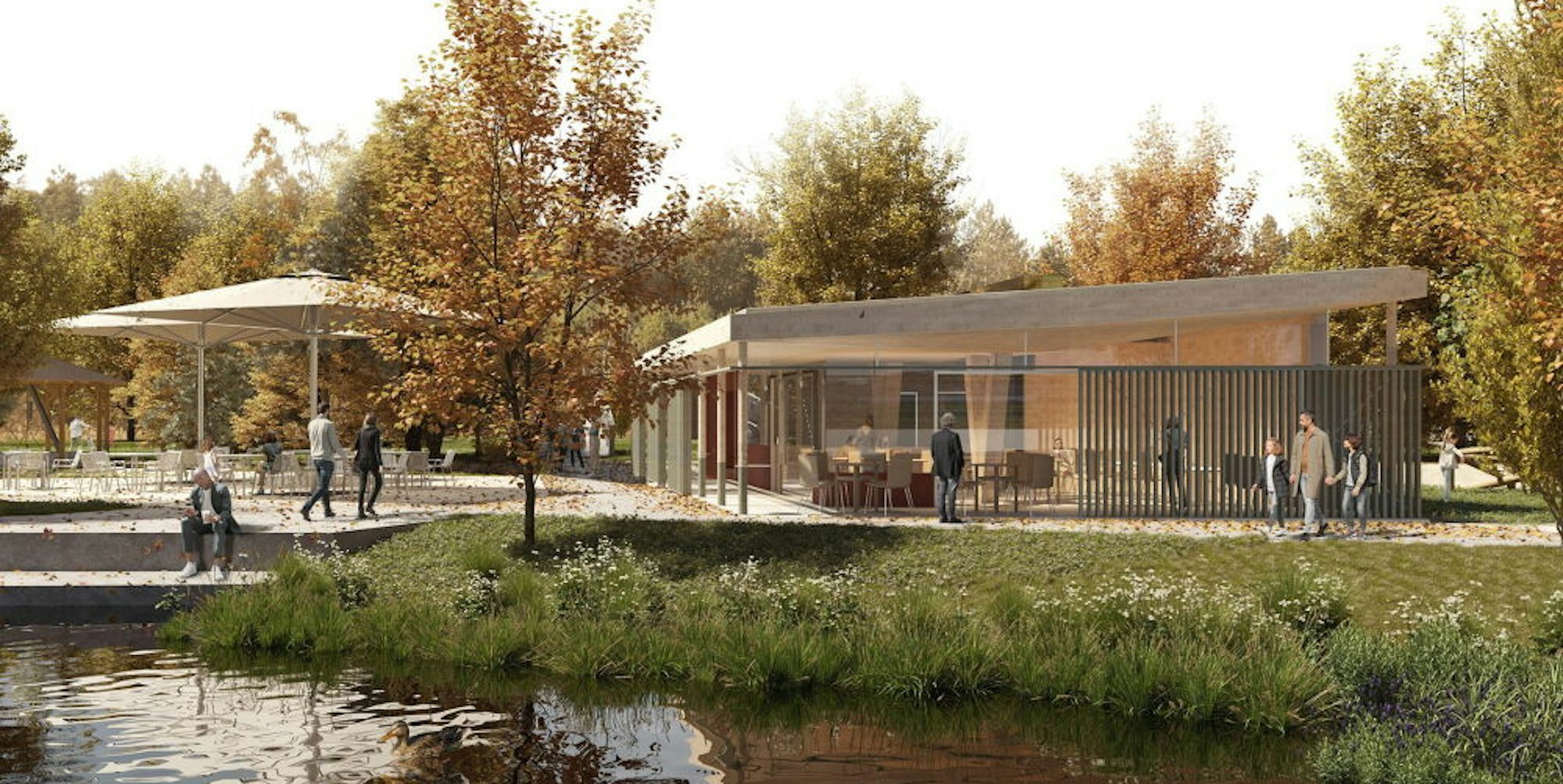 Was im Verwaltungsjargon nüchtern „Versorgungsstation“ heißt, nannte Alice Sturm vom Kölner Architekturbüro Molestina treffender „Seecafé“. Etwa dort, wo heute die Hängebrücke zum Spielplatz hinüberführt, soll ein Kiosk mit überdachtem Außenbereich entstehen.