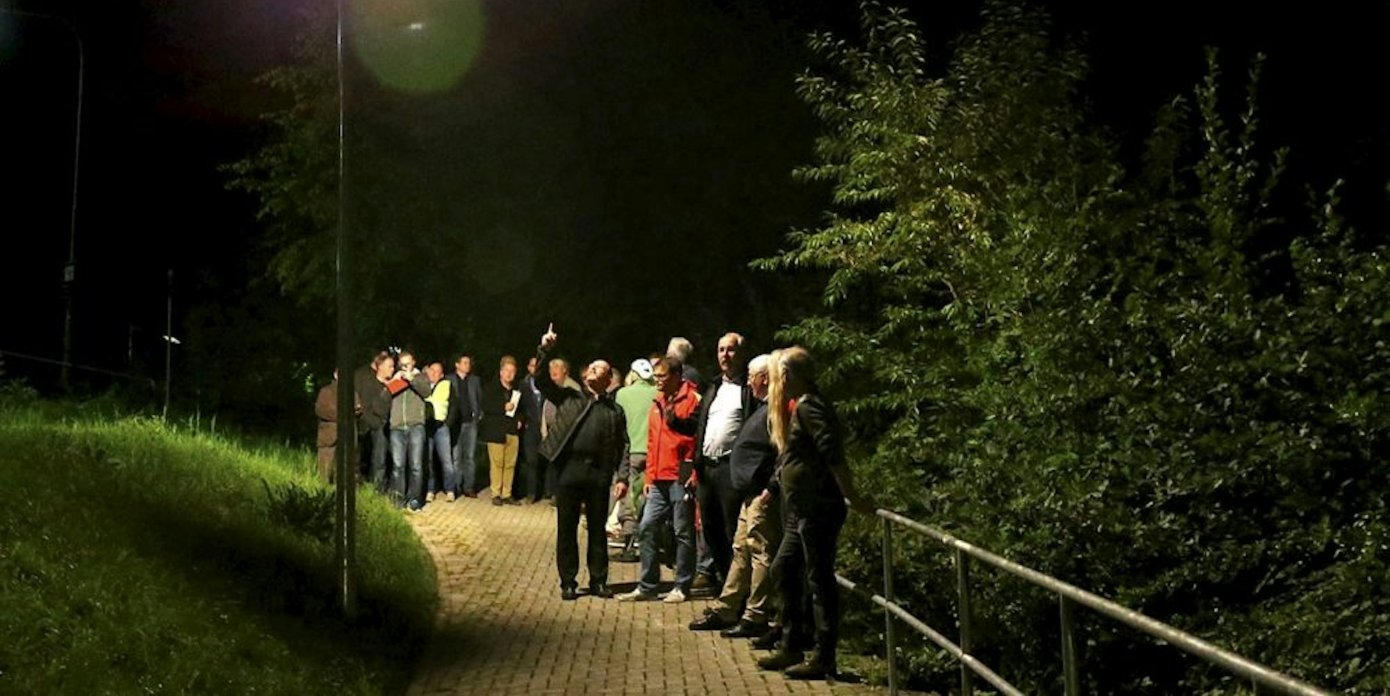 Bei einem abendlichen Probelauf verglichen Rat und Verwaltung verschiedene Laternen. Am Ende entschied sich der Fachausschuss einstimmig für ein Modell.