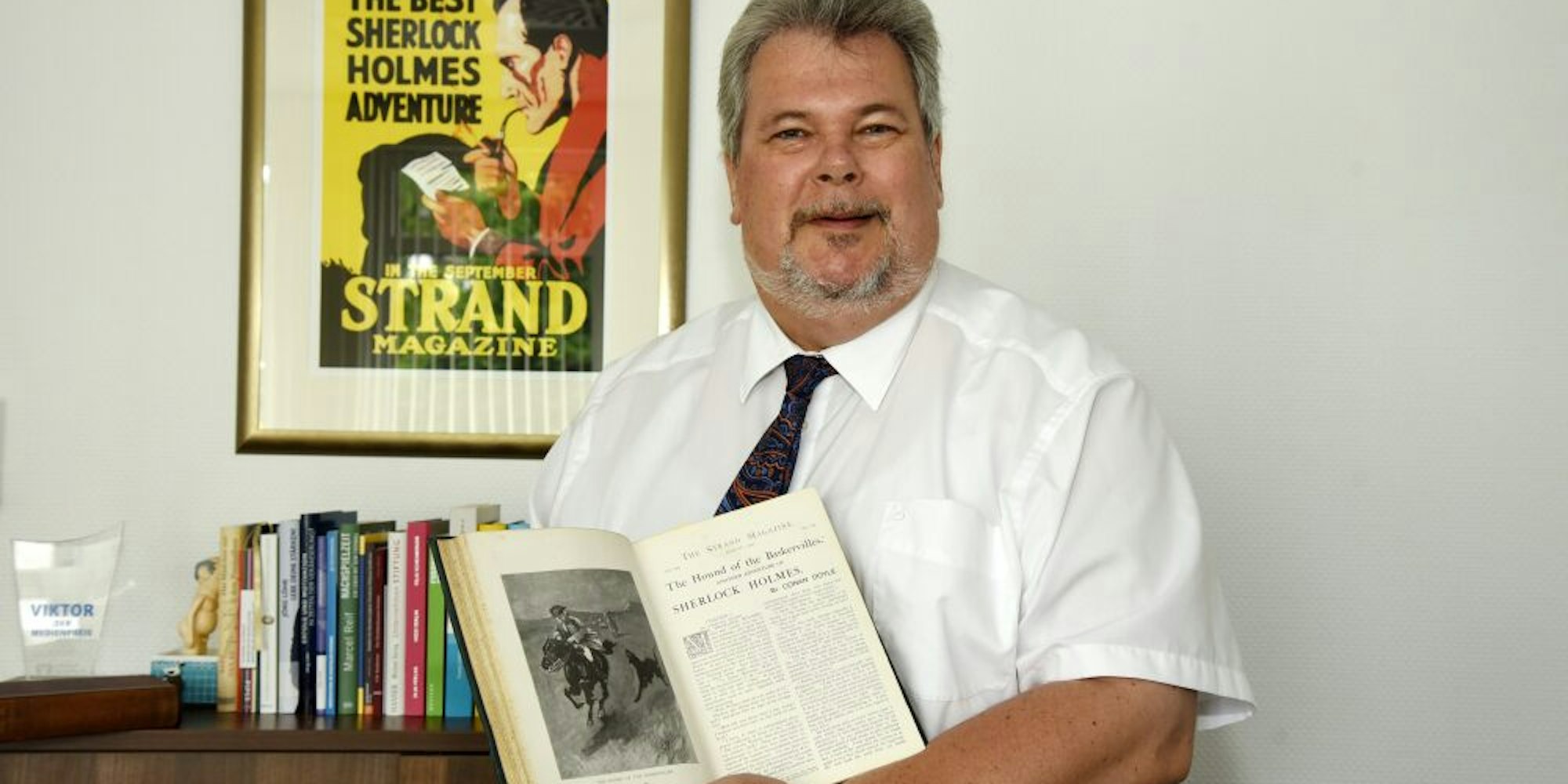 Thomas Knura, Sprecher der Volksbank Oberberg, mit der gemeinsam unsere Zeitung in diesem Sommer den Wettbewerb „Mein Lieblingsbuch“ ausgerufen hat, weiß die Antwort. Diese und noch viel mehr: Denn Knura hat die Spur des Detektivs aufgenommen. Angetan hat es ihm vor allem „Der Hund von Baskerville“. Ziemlich genau zehn Jahre ist es her, da haben ihm seine Frau und sein Sohn zu seinem 50. Geburtstag die Erstausgaben von 1901 und 1902 der ursprünglich als Fortsetzungsroman in neun Folgen im britischen Monatsmagazin „The Strand“ erschienenen und illustrierten Geschichte ersteigert. Wenn man sieht, wie stolz er die beiden alten Bücher herzeigt, dann sieht man ihm an: Über dieses Geschenk hat er sich damals sehr gefreut ...