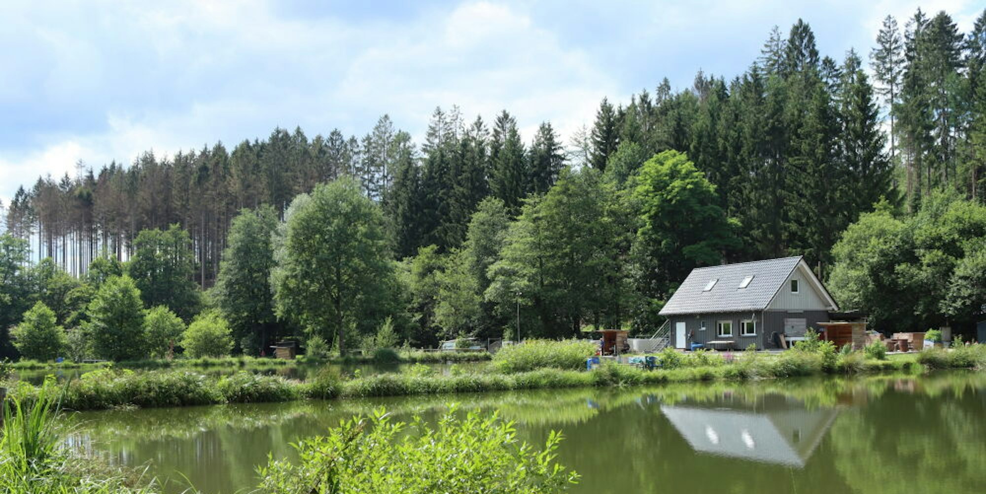 Gerne sitzen die Angler zwischendurch in der Sitzanlage aus Palettenmöbeln und halten ein Schwätzchen. Es ist das Revier von Belinda Beumer, die ihre Gäste verwöhnt. Stammkunde Jörg Berning aus Grevenbroich ist begeistert: „Das ist die beste Anlage weit und breit, der Service passt.“ Elwyn Beumer erklärt sein Prinzip: „Den Angeltag muss der Angler selbst gestalten. Ich schaffe nur die Rahmenbedingungen.“ Konkurrenz machen den Anglern lediglich ein paar Reiher und Kormorane, die gelegentlich neugierig über dem Tal kreisen. Auch einen Seeadler habe Elwyn Beumer schon in seinem Revier beobachtet.