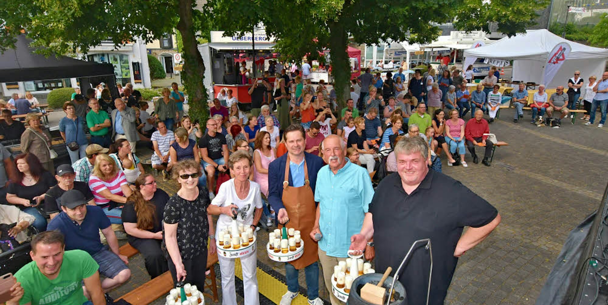 Kölsch zum Start: (v.r.) Maik Adomeit, Vorsitzender des Heimatvereins, eröffnete mit Hans Sommer, Bürgermeister Ulrich Stücker, Karla Gaisbauer und Else Zakaria das Fest in Wiehl.