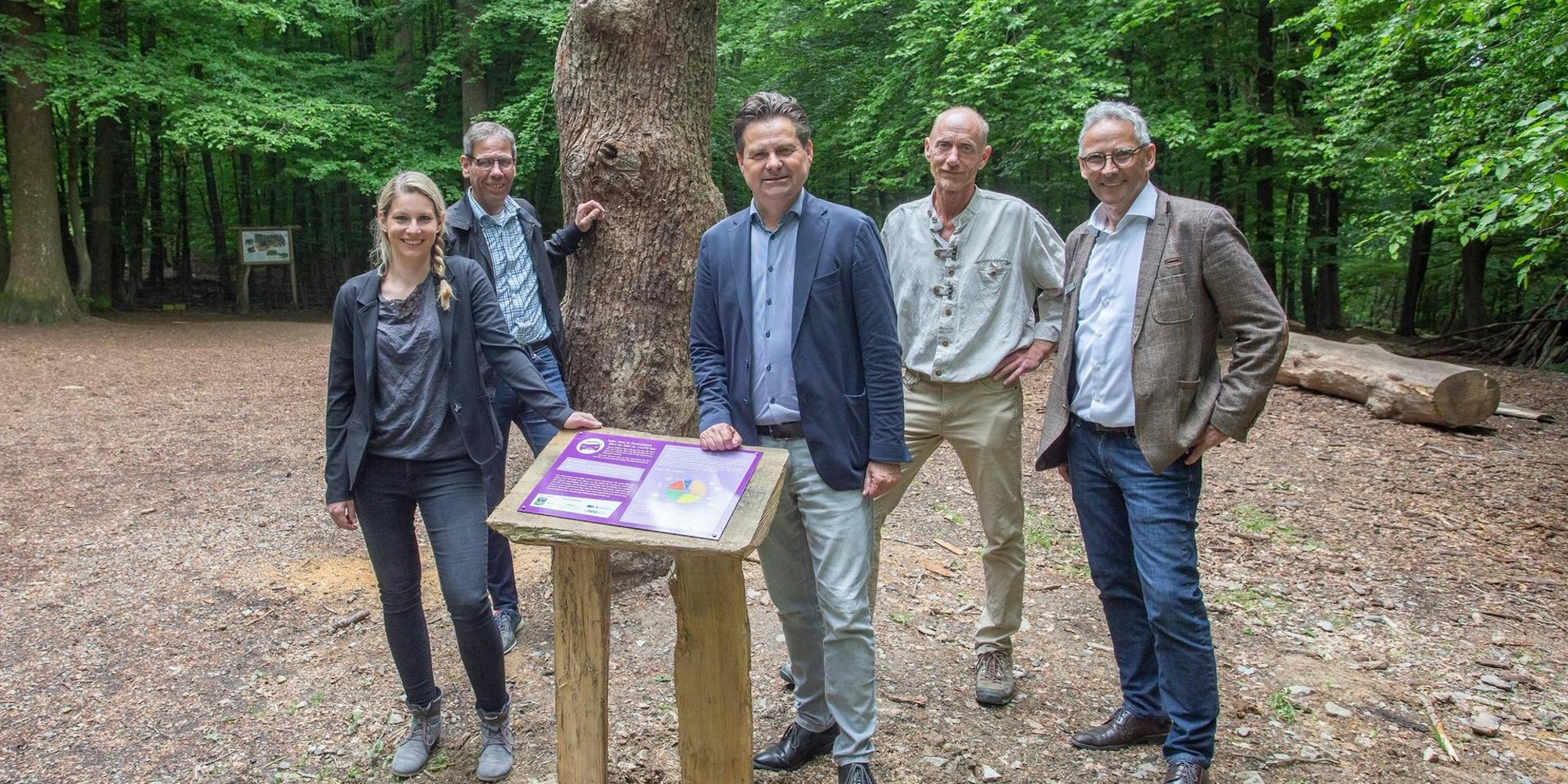Das glauben auch Andreas Zurek und Bert Schneider, die Geschäftsführer der Freizeit- und Sportstättengesellschaft Wiehl (FSW). FSW-Wildparkleiter Michael Schweers erläutert: „Ziel des Projekts ist die Darstellung der Zusammenhänge zwischen dem Wald und der Tierwelt, der Wasserversorgung, der Luftreinigung und des Klimawandels.“ Hierzu wurden klimaresistente Bäume gepflanzt: Robinie, Esskastanie, Baumhasel, Roteiche und Sommerlinde.
