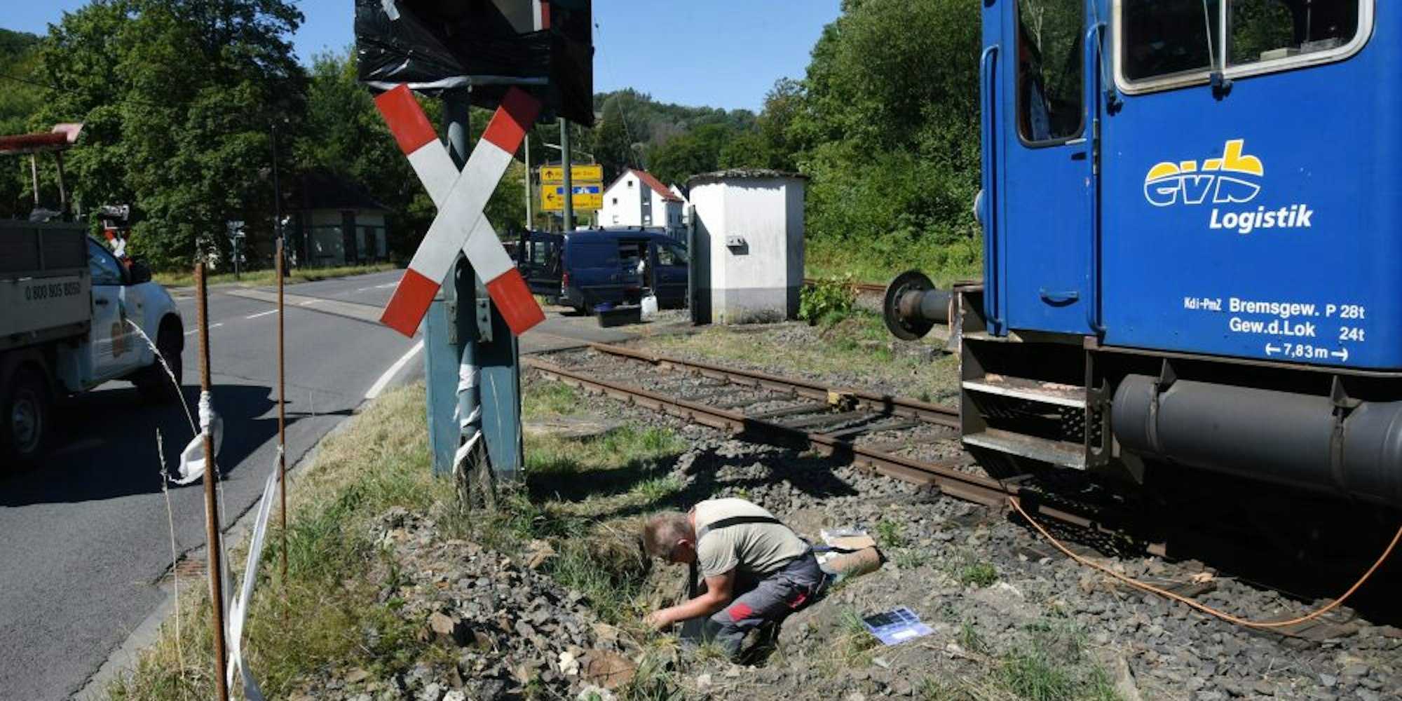 Und mit Eigenleistung: Am Freitag kümmerten sich Georg Zimmermann und Kurt Abel um einen Defekt an der Verkabelung der Weichen in Osberghausen.