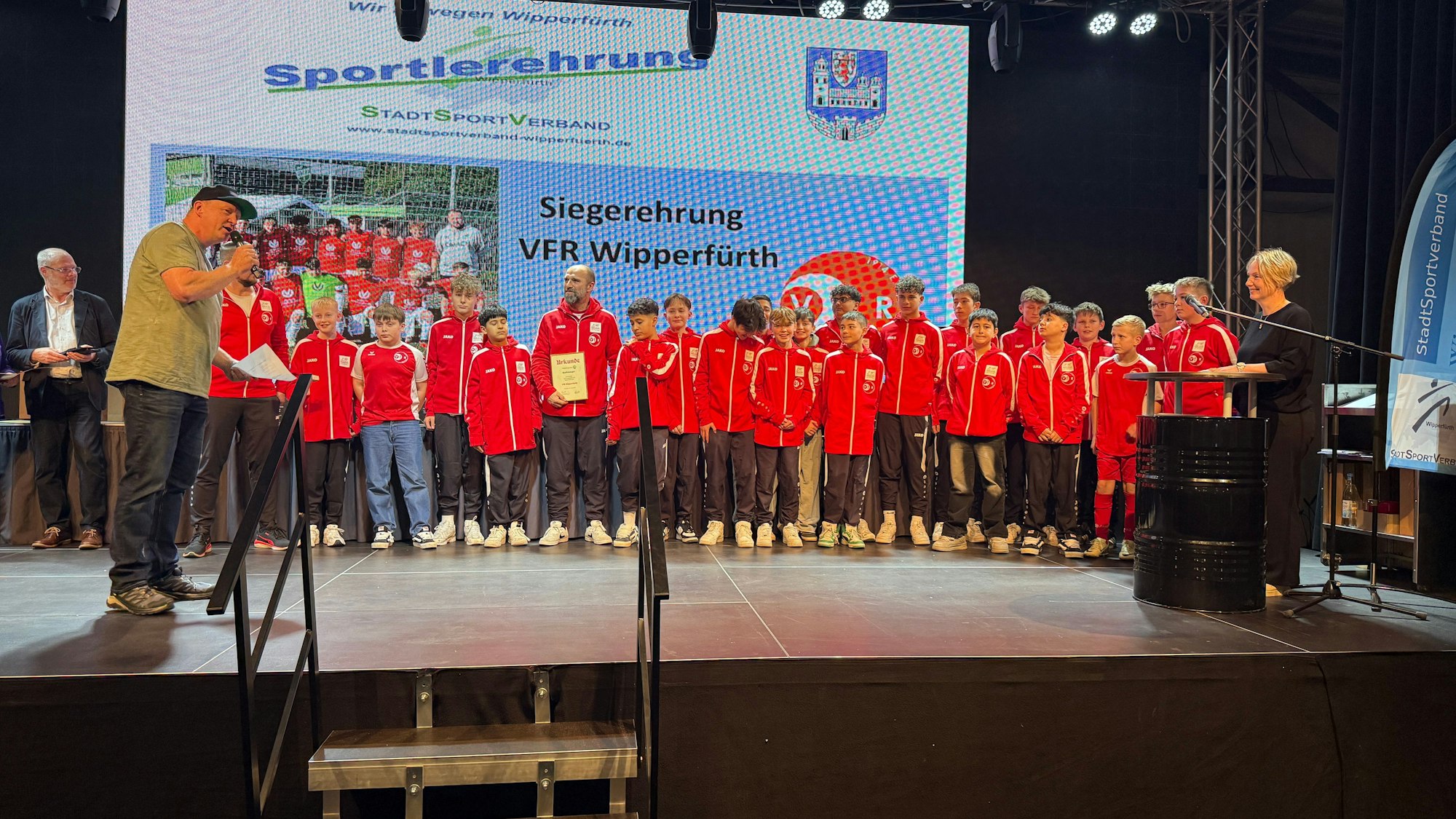 Der Freitagabend stand ganz im Zeichen des Breitensports. Der Wipperfürther Stadtsportverband hatte zur traditionellen Sportlerehrung in die Alte Drahtzieherei eingeladen. Monika Breidenbach, die Vorsitzende des Stadtsportverbands, freute sich einmal mehr darüber, dass so viele Menschen gekommen waren, um gemeinsam mit ihr, dem stellvertretenden Bürgermeister Heribert Berster, ihrer Stellvertreterin Leslie Kamphuis und Moderator Uli Becker den Sport in Wipperfürth hochleben zu lassen. Für Berster ist klar: „Sport ist eine Reise, ist weit mehr als ein Wettkampf oder ein Ziel, das es zu erreichen gilt.“ Diese Reise beginne mit dem Entschluss, die eigene Komfortzone zu verlassen. Teamgeist, gegenseitige Unterstützung und die gemeinsame Freude über das Erreichte seien Stationen dieser Reise. Ohne das ehrenamtliche Engagement der Trainer und Betreuer in den Vereinen sei dies nicht möglich.