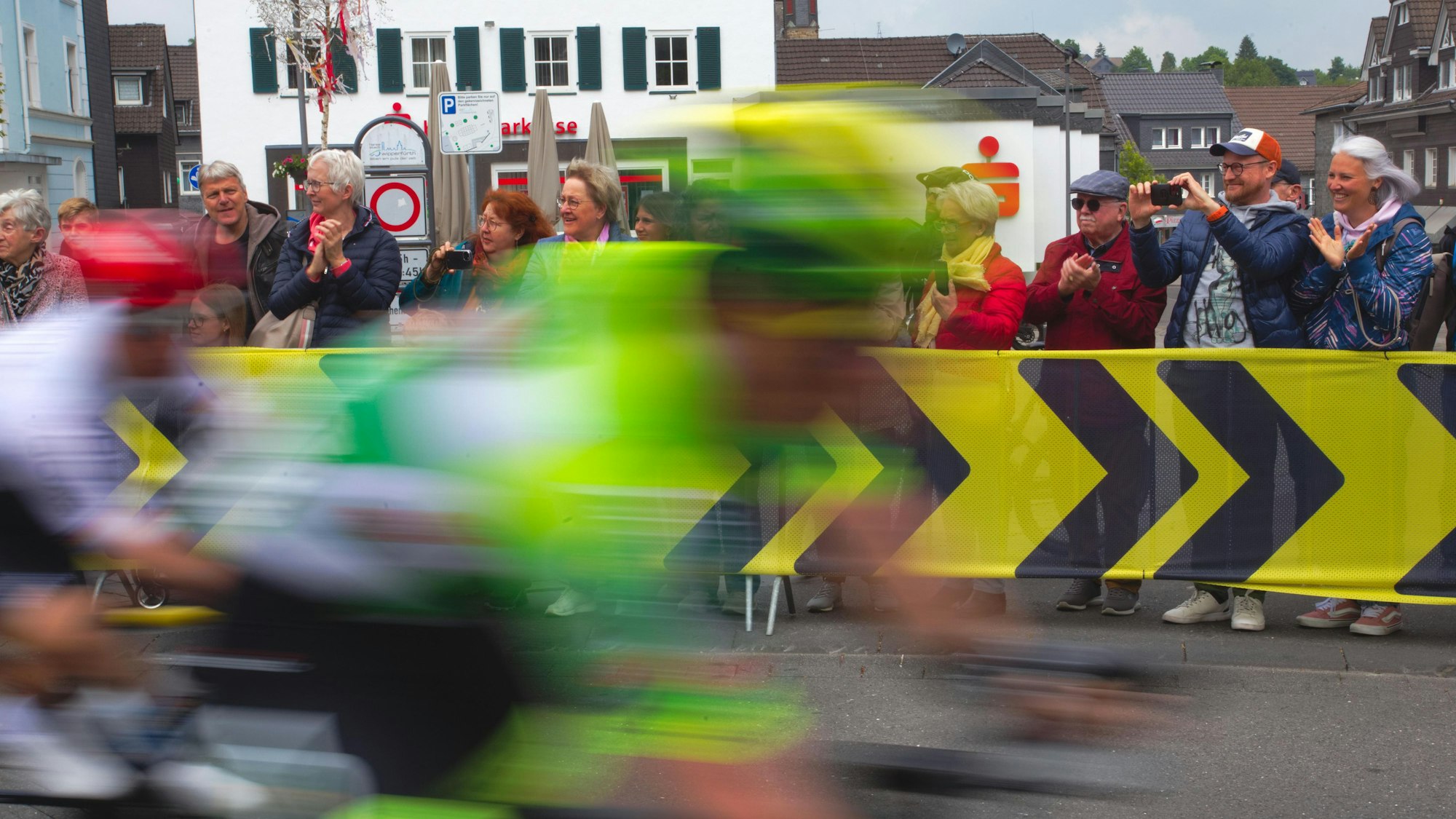 Schnell sausen die Profis an den Zuschauern auf dem Wipperfürther Marktplatz vorbei.