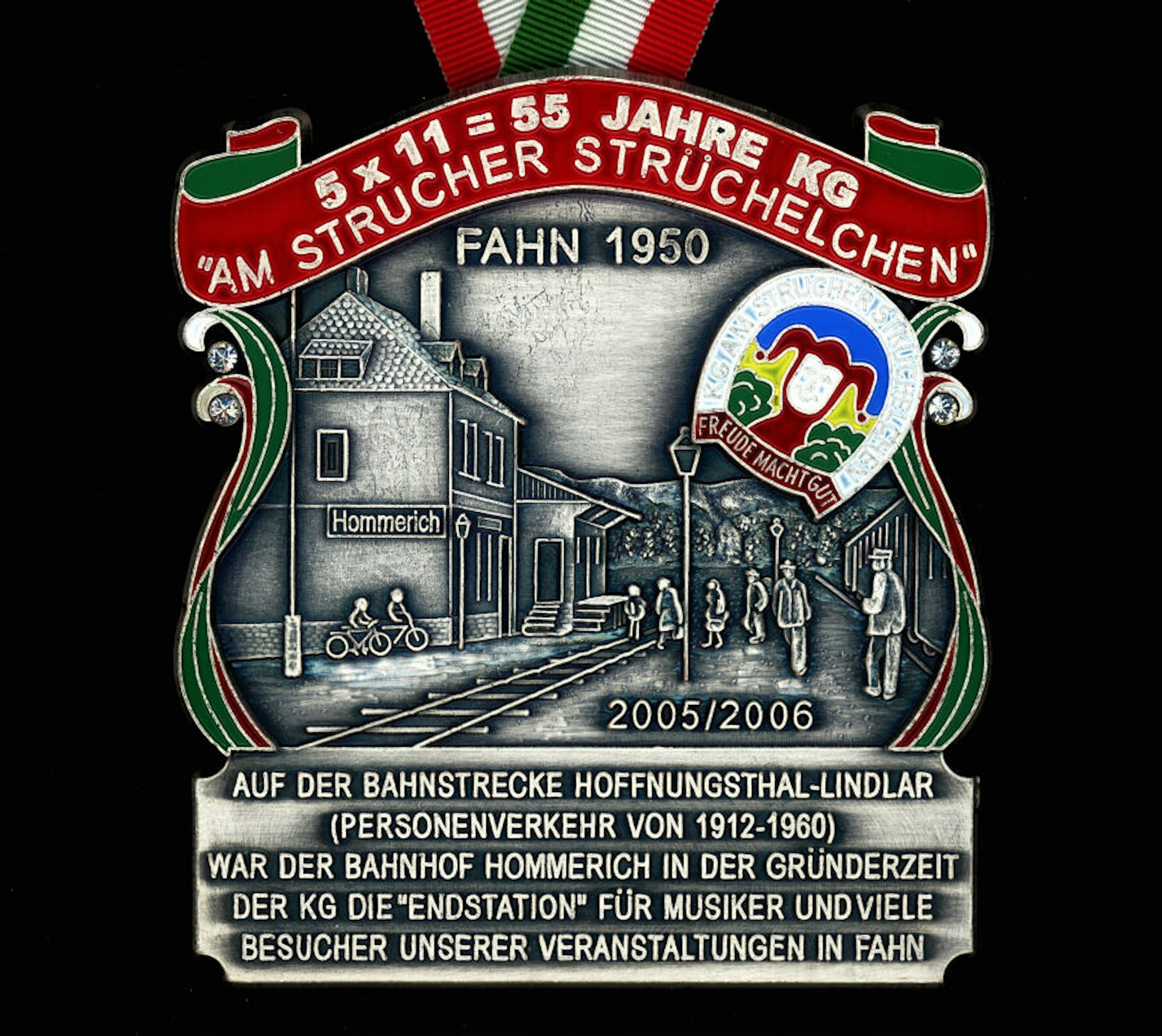 Der Jubiläumsorden von 2005/2006, die jecken Auszeichnungen der KG waren immer liebevoll gestaltet.