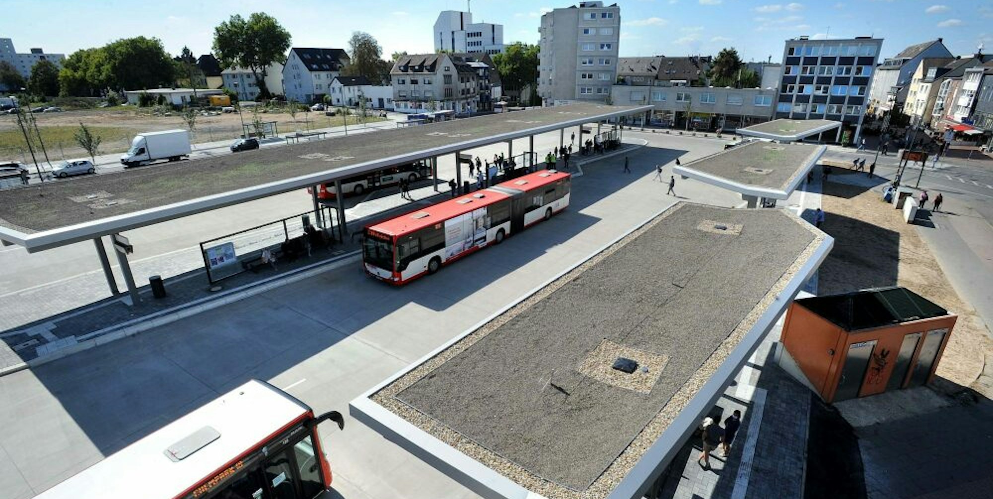Der neue Busbahnhof in Opladen, frisch eingeweiht. Rund um den Bahnhof, an dem verschiedene Mobilitätsarten zusammenkommen, sollen demnächst Fahrgäste befragt werden.