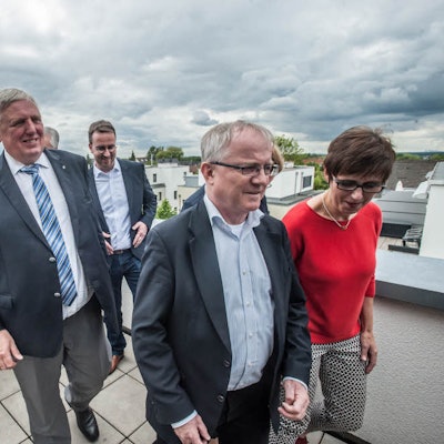 Leverkusen – Es regnet in Strömen am Donnerstagnachmittag, als Claudia Middendorf, Beauftragte der NRW-Landesregierung für Menschen mit Behinderung sowie für Patienten, an der Steinbücheler Straße, Ecke Bruchhauser Straße eintrifft. Auch der Landtagsabgeordnete Rüdiger Scholz und der Oberbürgermeisterkandidat der CDU Frank Schönberger sind gekommen, um den Fortschritt der Arbeiten auf der Baustelle von Leverkusens erstem Hospiz „PalliLev“ zu begutachten.