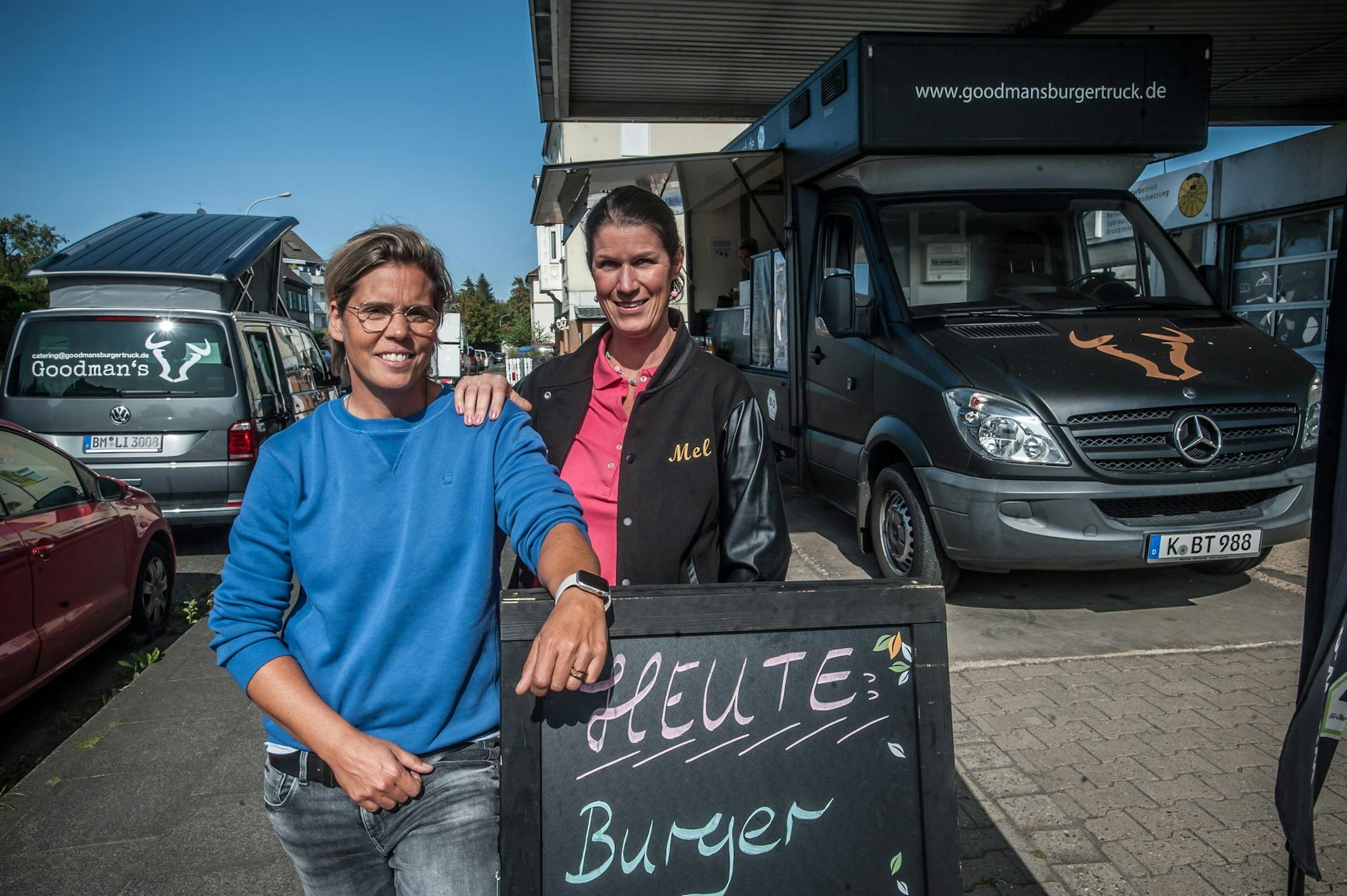 Leverkusen – Burger sind ihr Brot-und-Butter-Geschäft: Sechs Foodtrucks gehören Melanie Linden und Nicole Heimel, die von Dienstag bis Sonntag in unterschiedliche Städte ausschwärmen, um die hungrigen Bürger mit Cheeseburger und Pommes Frites zu versorgen. Angefangen hat alles mit einem alten umgebauten Frittenwagen, der mittlerweile sein Gnadenbrot bekommt. „In den USA, Neuseeland, Australien gab es diese Foodtrucks schon länger“, erinnert sich Linden an die Anfänge 2013. „Das fehlte hier.“