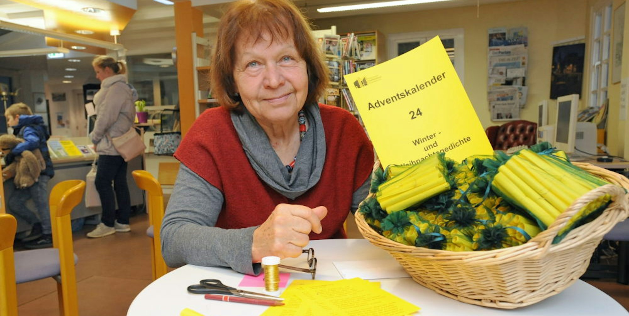 Wie in den Vorjahren verkauft der Förderverein wieder literarische Adventskalender, ein Beutel mit 24 Gedichten kostet sieben Euro. Der literarische Kalender ist erhältlich zu den Öffnungszeiten der Bücherei an der Hauptstraße. Die Resonanz auf die vergangenen Aktionen war sehr gut. „Viele haben schon nachgefragt, ob wir das wiederholen.“