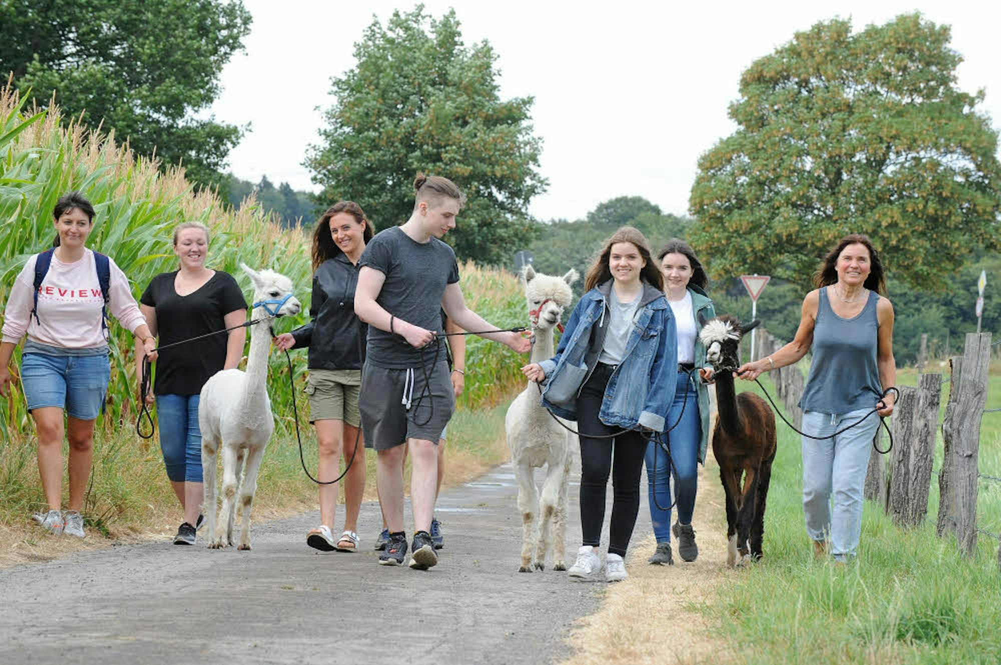 Dass es doch so kommt, hatte Alpaka-Besitzerin Christina Gelhaus nicht einkalkuliert. „Als wir mit den Wanderungen angefangen haben, wussten wir nicht, dass so ein Hype kommt. Unsere Wanderungen sind weit im Voraus ausgebucht, wir hatten schon Besuch aus Bielefeld oder Münster.“