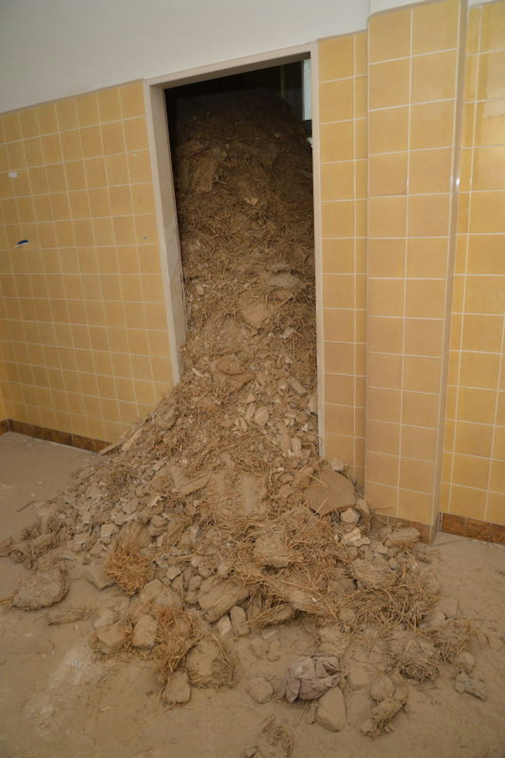 Der Keller wird mit Erdreich zugeschüttet.
