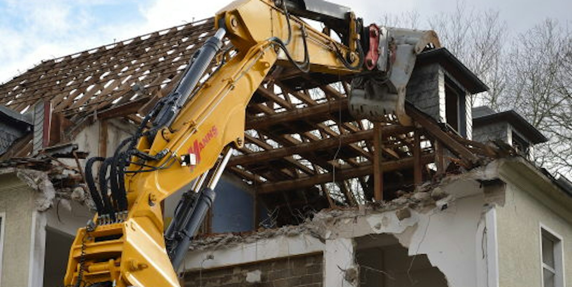 „Vor allem ist dann die freigelegte Fassade sorgfältig abzudichten, zum Schutz vor dem Wetter.“ Parallel zum Hausabbruch räumt das Unternehmen auch den Garten frei. Bevor der Brutschutz im März beginnt, fallen bis Ende Februar mehr als 15 Bäume.