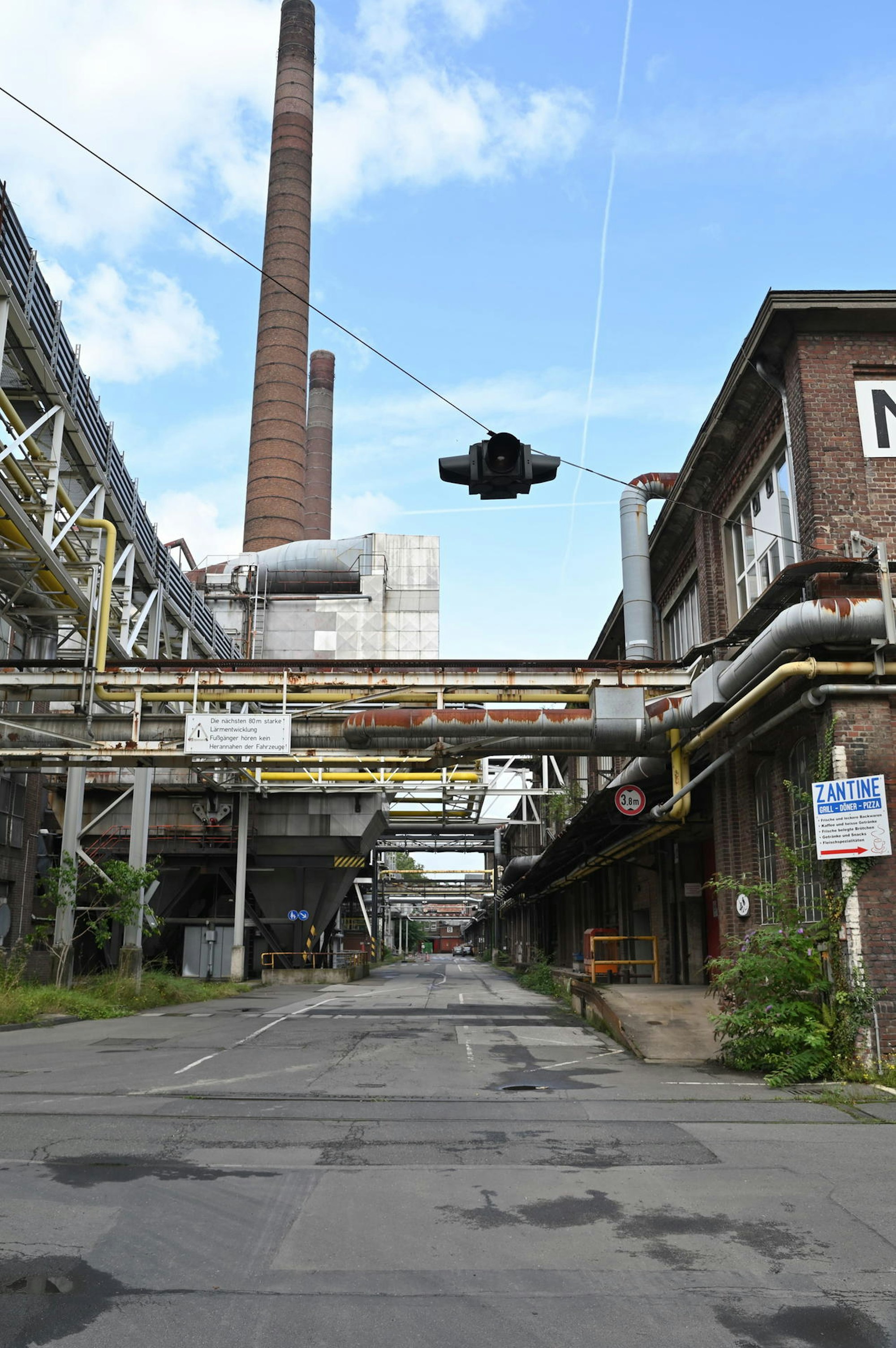 In der Fantasie der Planer wird diese Werksstraße die neue Verkehrsachse durch ein Wohn- und Gewerbegebiet. Nicht nur die Fassaden, sondern auch die Leitungen bleiben erhalten.