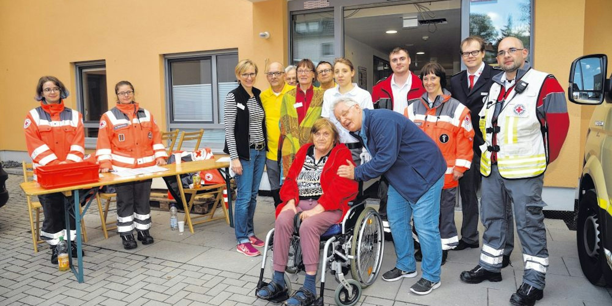 Das Deutsche Rote Kreuz nutzt den Umzug als Evakuierungsübung: Einige Bewohner müssen liegend transportiert werden.