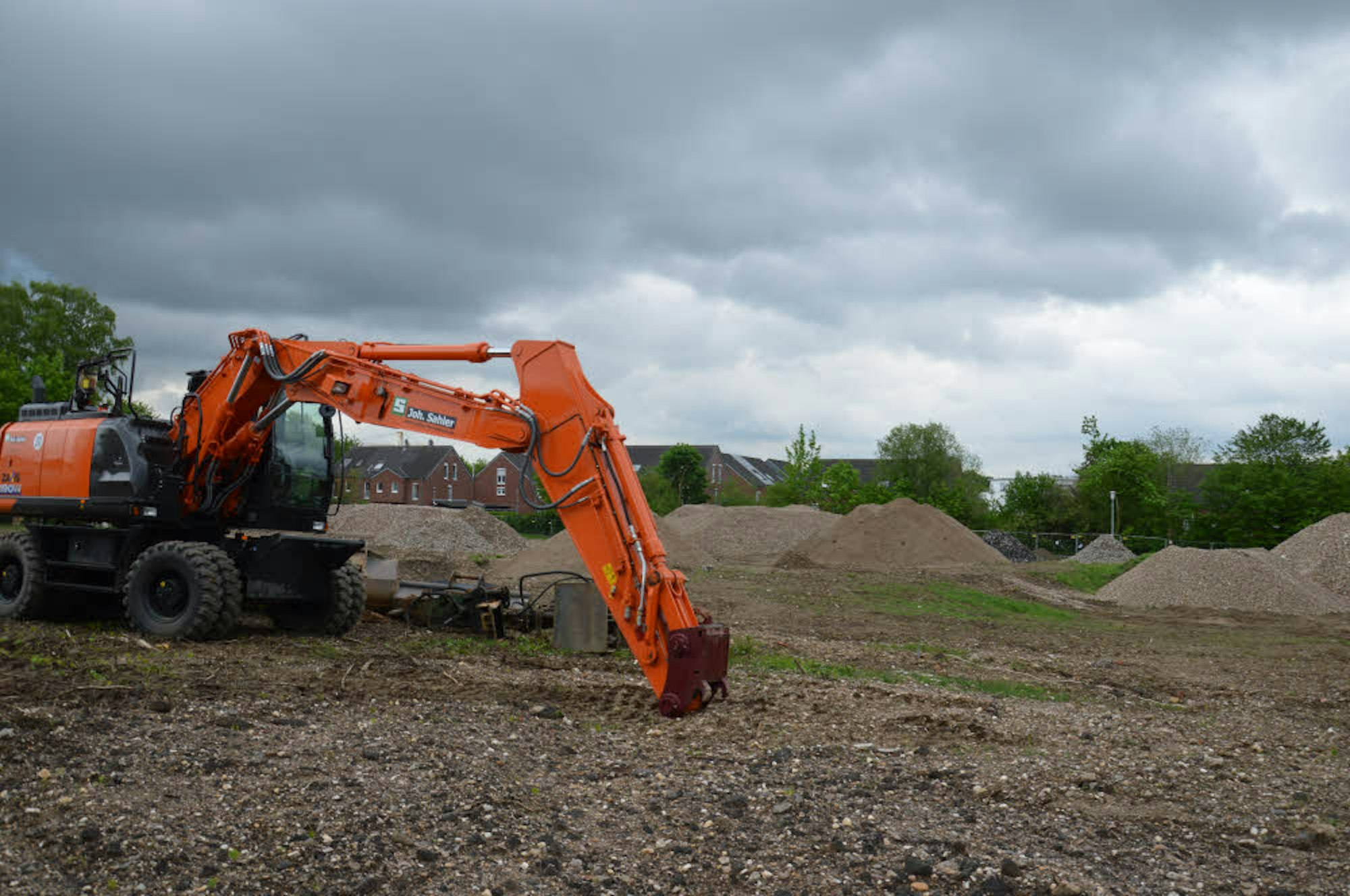 Das Ausschachten der Baugruben soll kommende Woche starten. „Es wird dann zügig voran gehen. Ab Mitte Juni haben wir den Baubeginn der ersten beiden Rohbauten vorgesehen“, kündigt die RBS-Chefin an. Auf dem Gelände sollen drei große Kräne und weitere schwere Baugeräte eingesetzt werden. Der auf dem Areal gelagerte Boden sei untersucht worden und könne nun wieder verarbeitet werden.