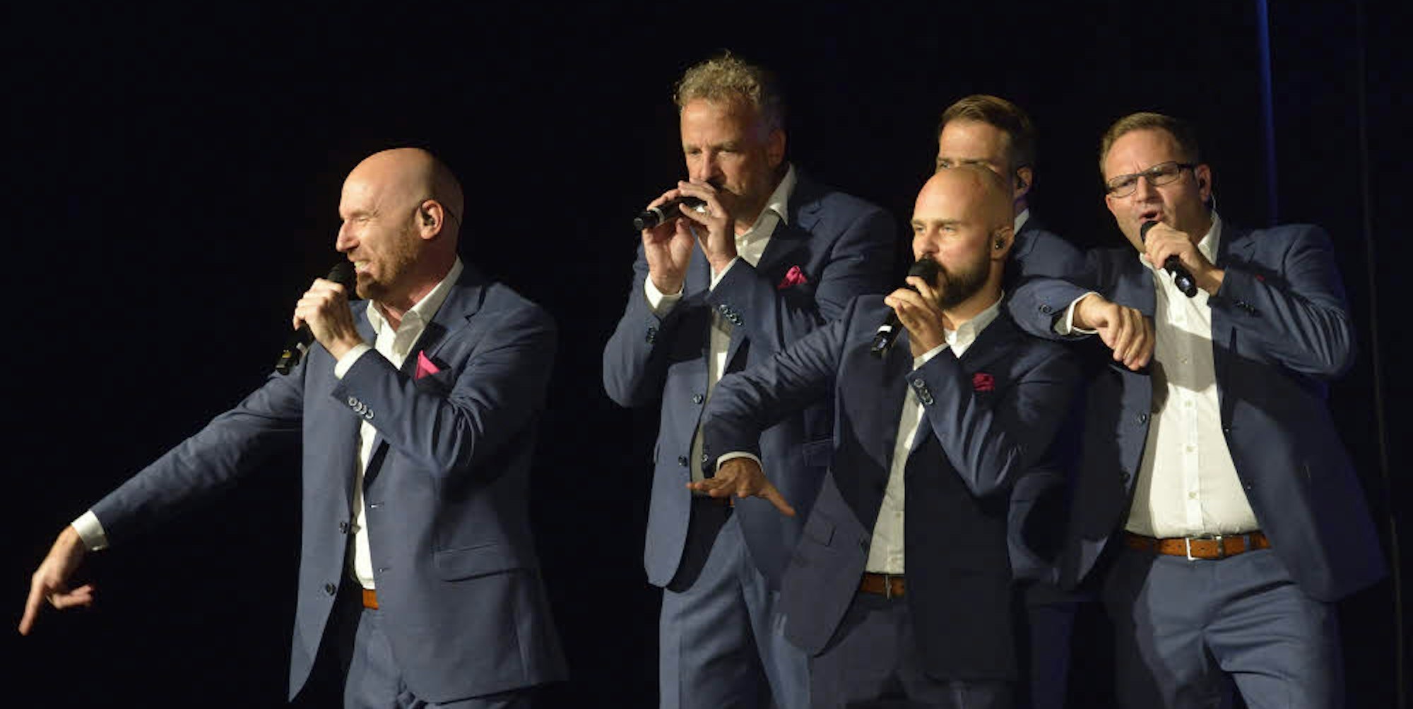 Bergisch Gladbach – „Wie schön ist das Leben? Ganz schön schön“, erfüllt ein fünfstimmiger A-cappella-Satz samt mundgemachtem Schlagzeug den Saal. Auf der mit weißen Schirmen inszenierten Bühne: die „Alten Bekannten“, „zwei Profimusiker und drei, die mal bei den Wise Guys waren“, wie sie sich später augenzwinkernd selbst vorstellen werden.
