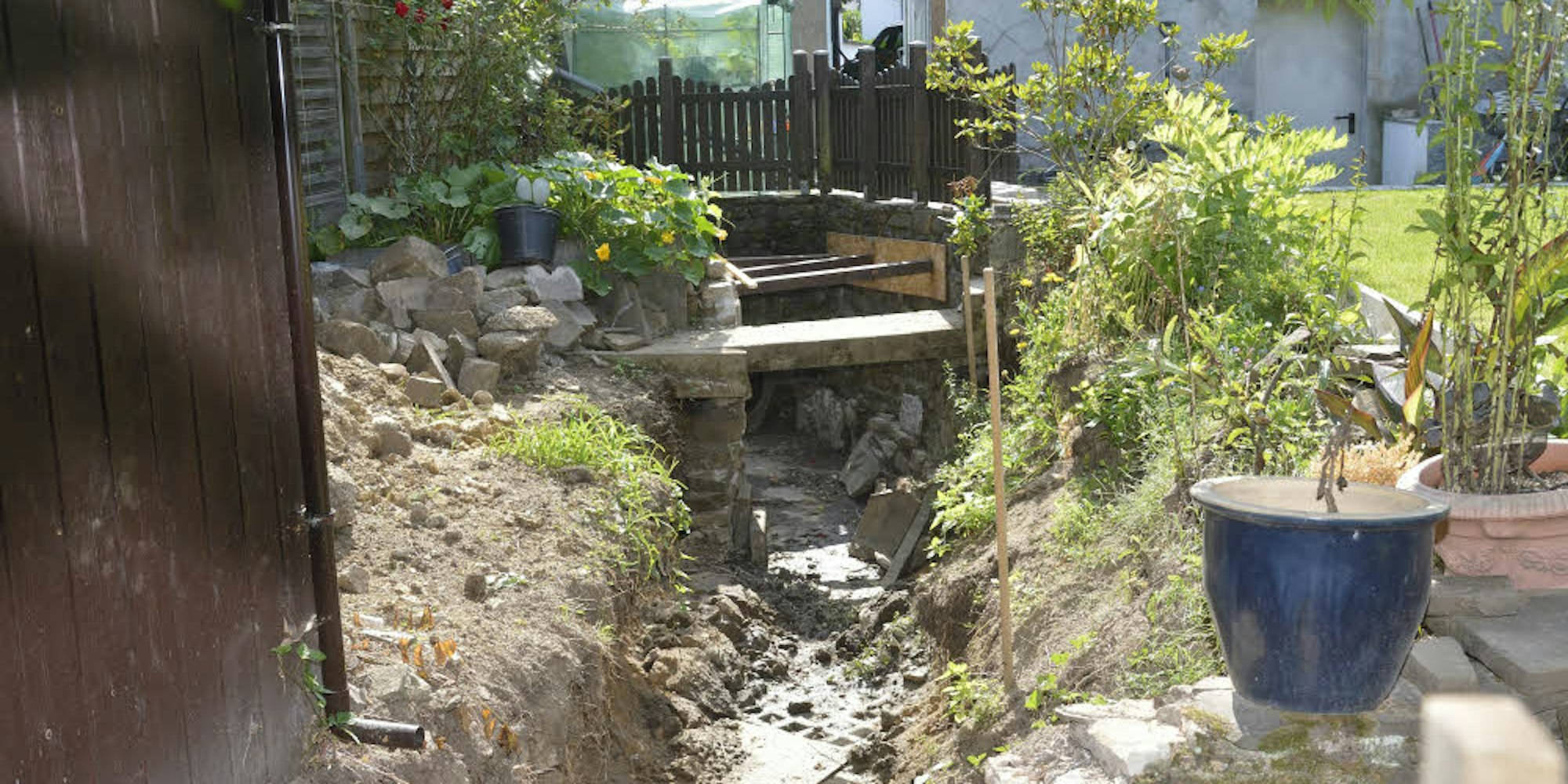 Im Garten von Günter Jünger: die großen Einbauten für den Hasselsbach.