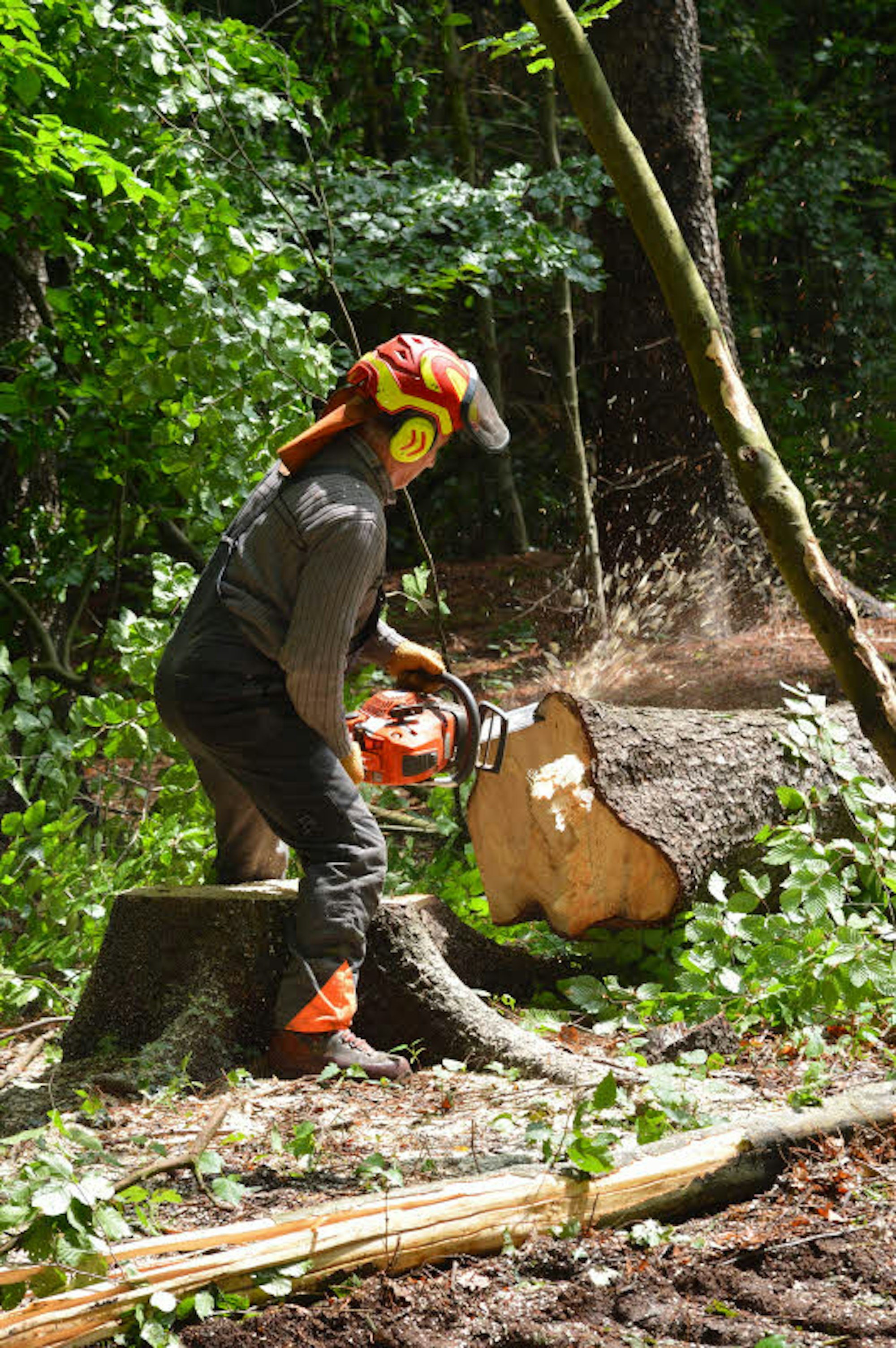 Das Fauchen der Säge ist schon von weitem zu hören. 25 Meter hohe und 90 Jahre alte Fichten gehen in zwei Minuten zu Boden. Beim Aufprall bebt der Untergrund. „Es ist zum Weinen. Aber da ist nichts zu machen“, bedauert Forstunternehmer Franc Godler. Gerade hat sein Mitarbeiter Wolfgang Meier die achte Fichte gefällt.