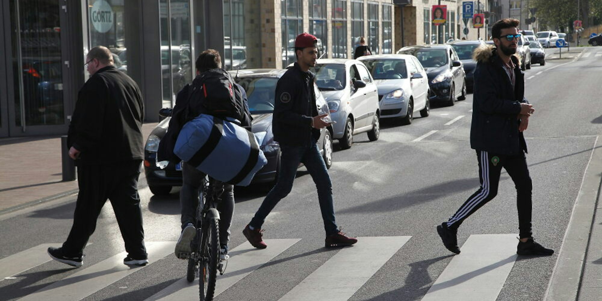 Auf der Stationsstraße treten Autos, Fußgänger und Radfahrer gegeneinander an. Diese soll deshalb autofrei werden.
