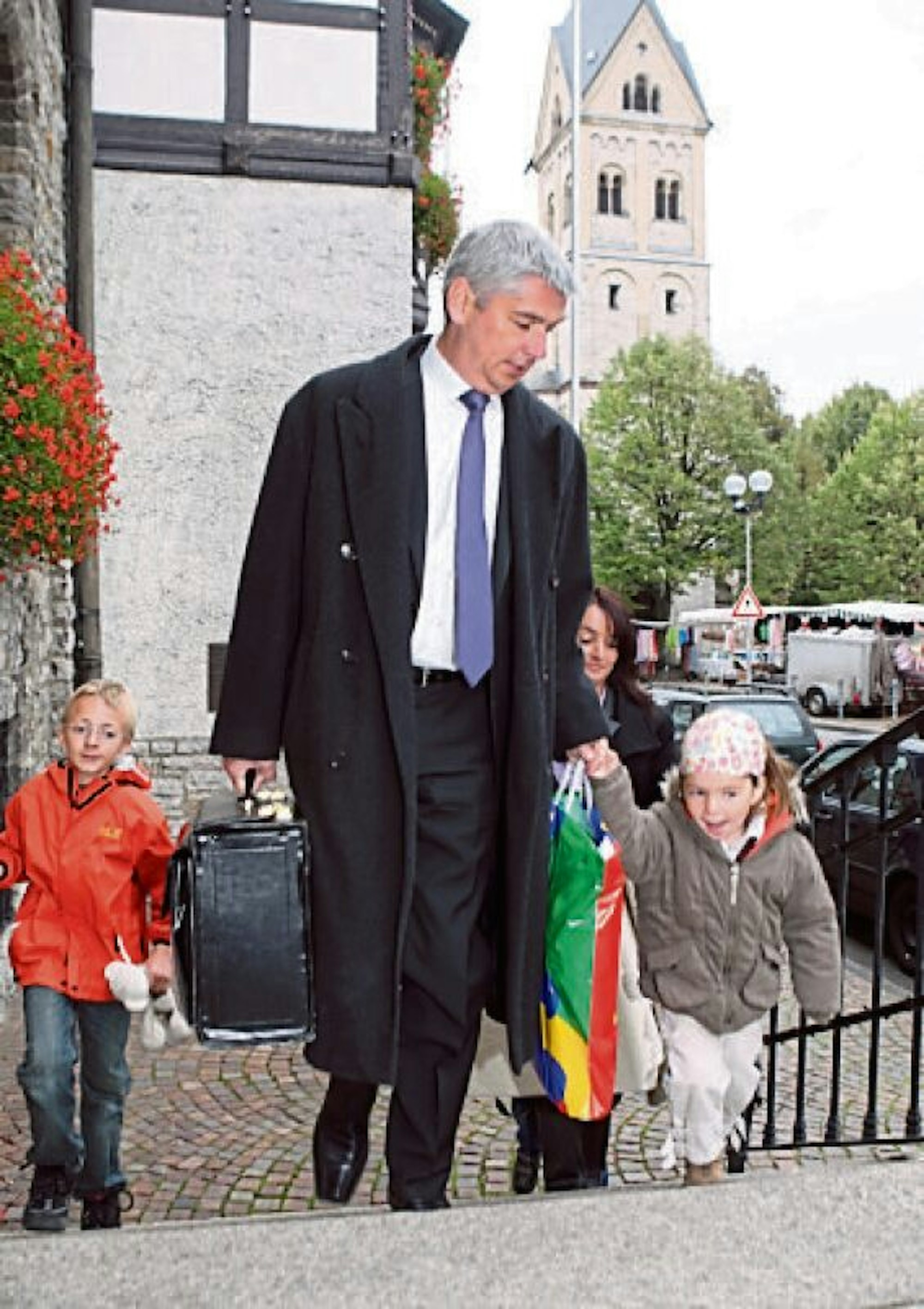 2009: Erster Einzug ins Gladbacher Rathaus. Die Kinder helfen beim Koffertragen.