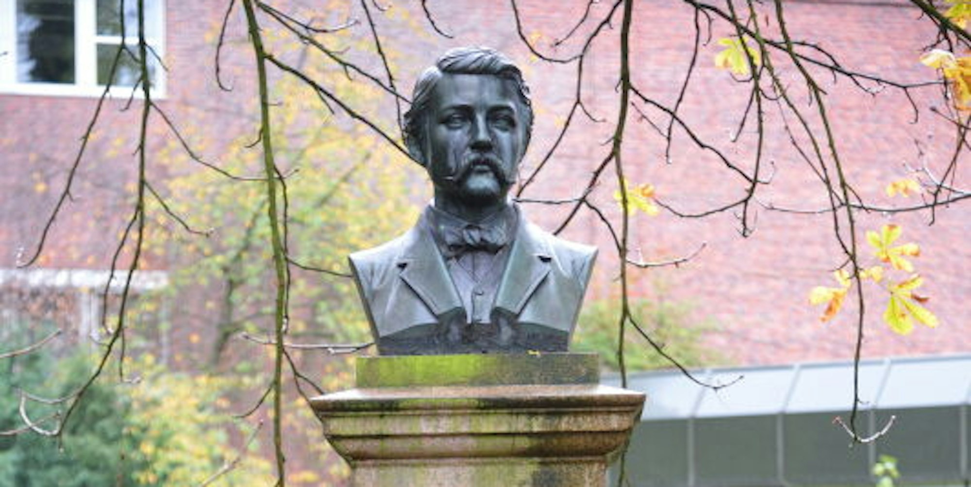 Die Büste von Richard Zanders auf dem Firmengelände erinnert an bessere Tage der Papierfabrik.