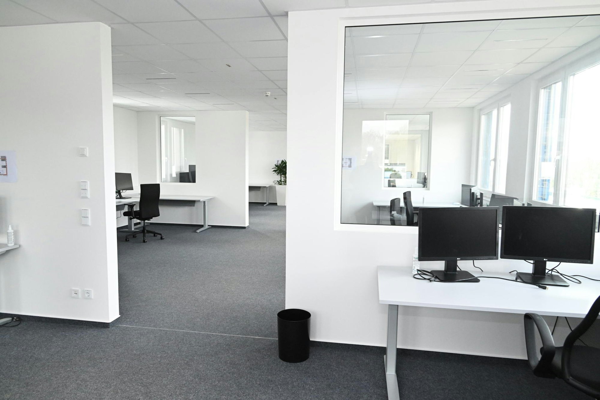 Erstmals gibt es einen Shared-Desk-Bereich in der zweiten Büroetage. Hier arbeiten Beschäftigte an wechselnden Arbeitsplätzen.