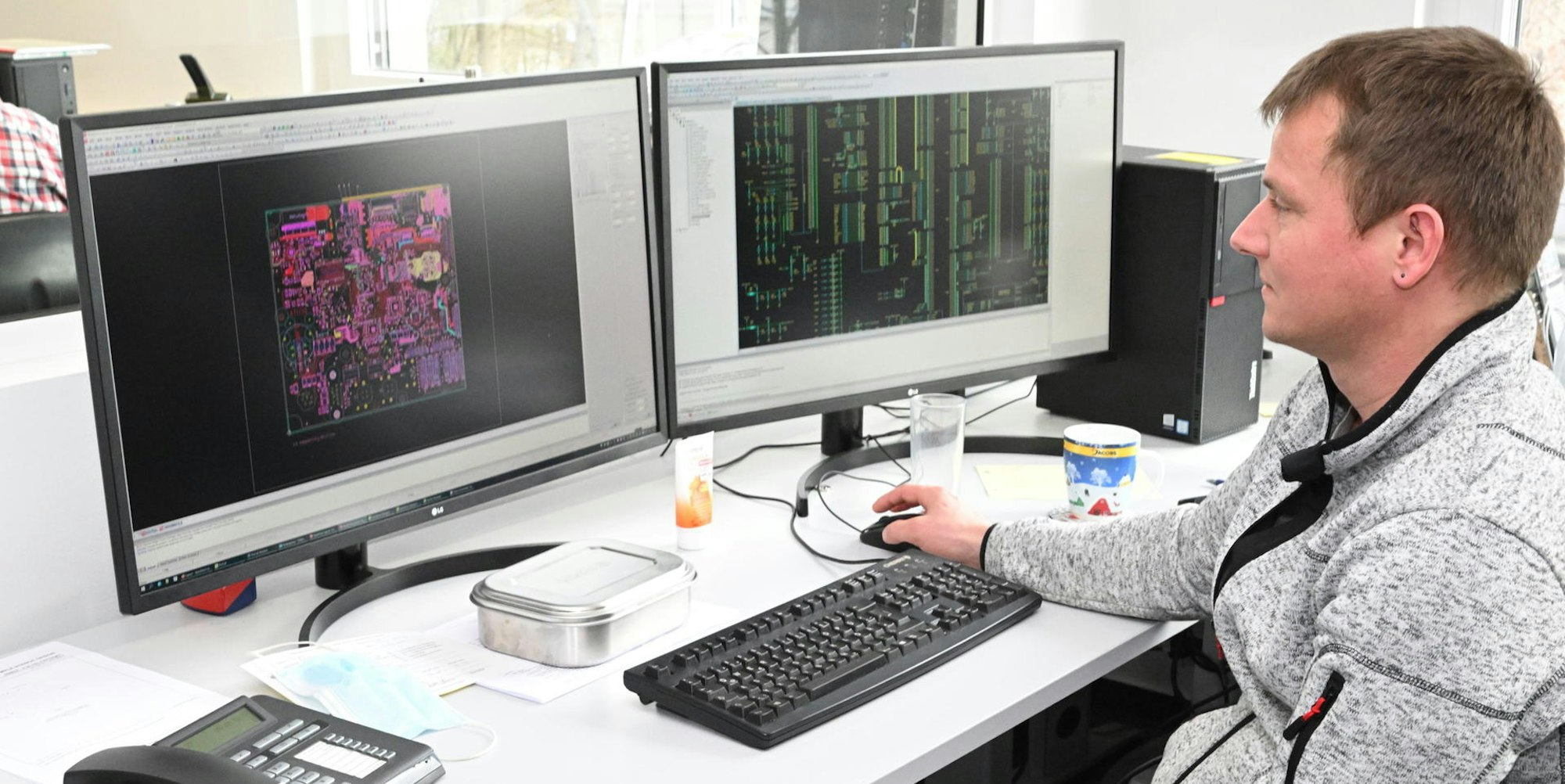 In hellen, offen gehaltenen Büroeinheiten arbeiten im neuen dreigeschossigen Gebäude 85 Frauen und Männer, unter ihnen Physiker, Ingenieurinnen und Techniker. Ziel der Erweiterung ist es, die Bereiche Hardware und Software in der Entwicklung zusammenzuführen. „Die Kommunikation unserer Fachleute untereinander ist sehr wichtig“, betont Ganz. Genau das werde nun in den neuen Büros und Besprechungsräumen erleichtert und gefördert. Den Bereich Entwicklung und Produkte leitet Holger Mann, der mehr als 20 Jahre bei Deuta tätig ist.