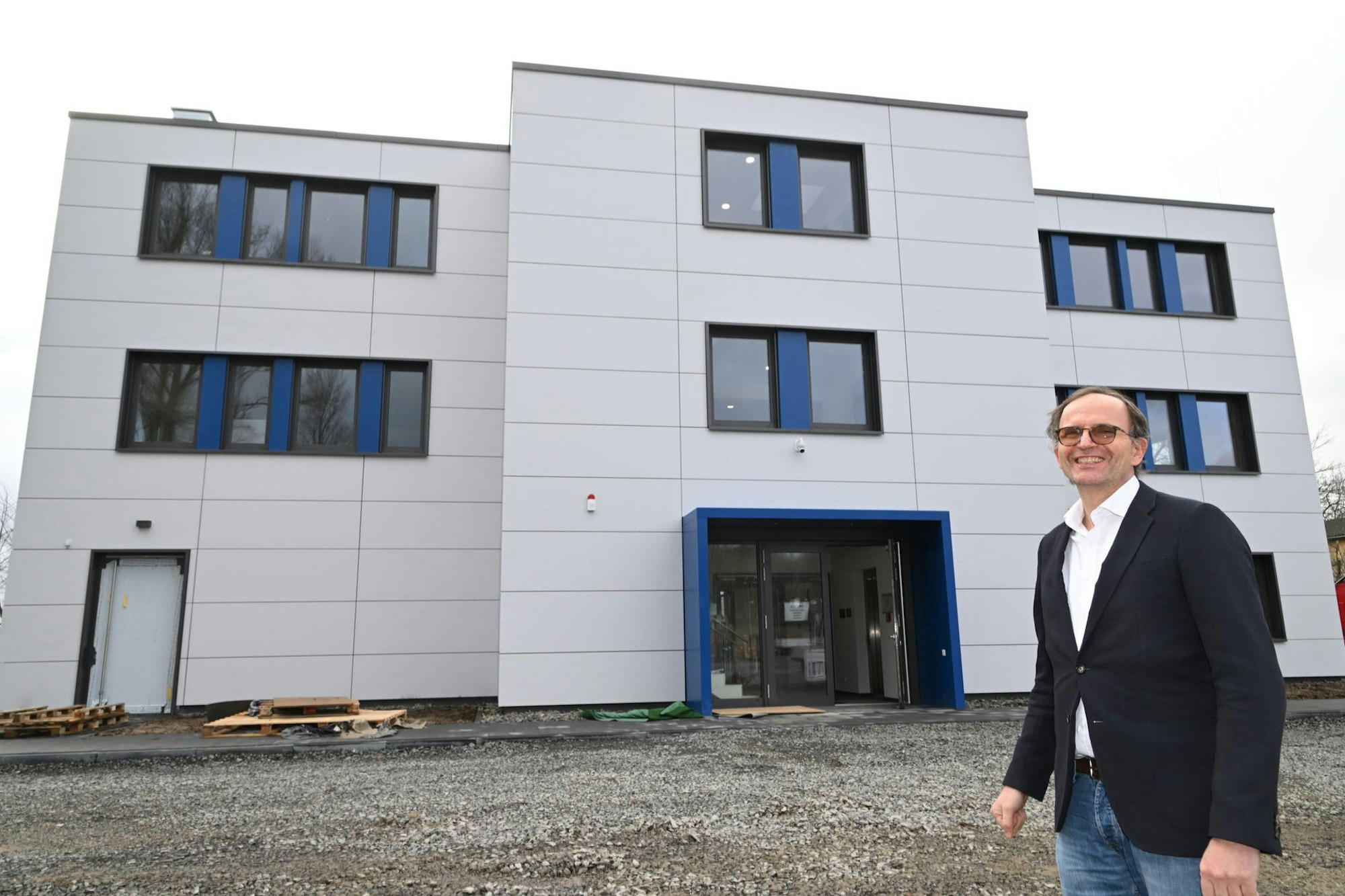 Geschäftsführer Rudolf Ganz stellt den Neubau für die Entwicklungsabteilung der Deuta Werke vor.
