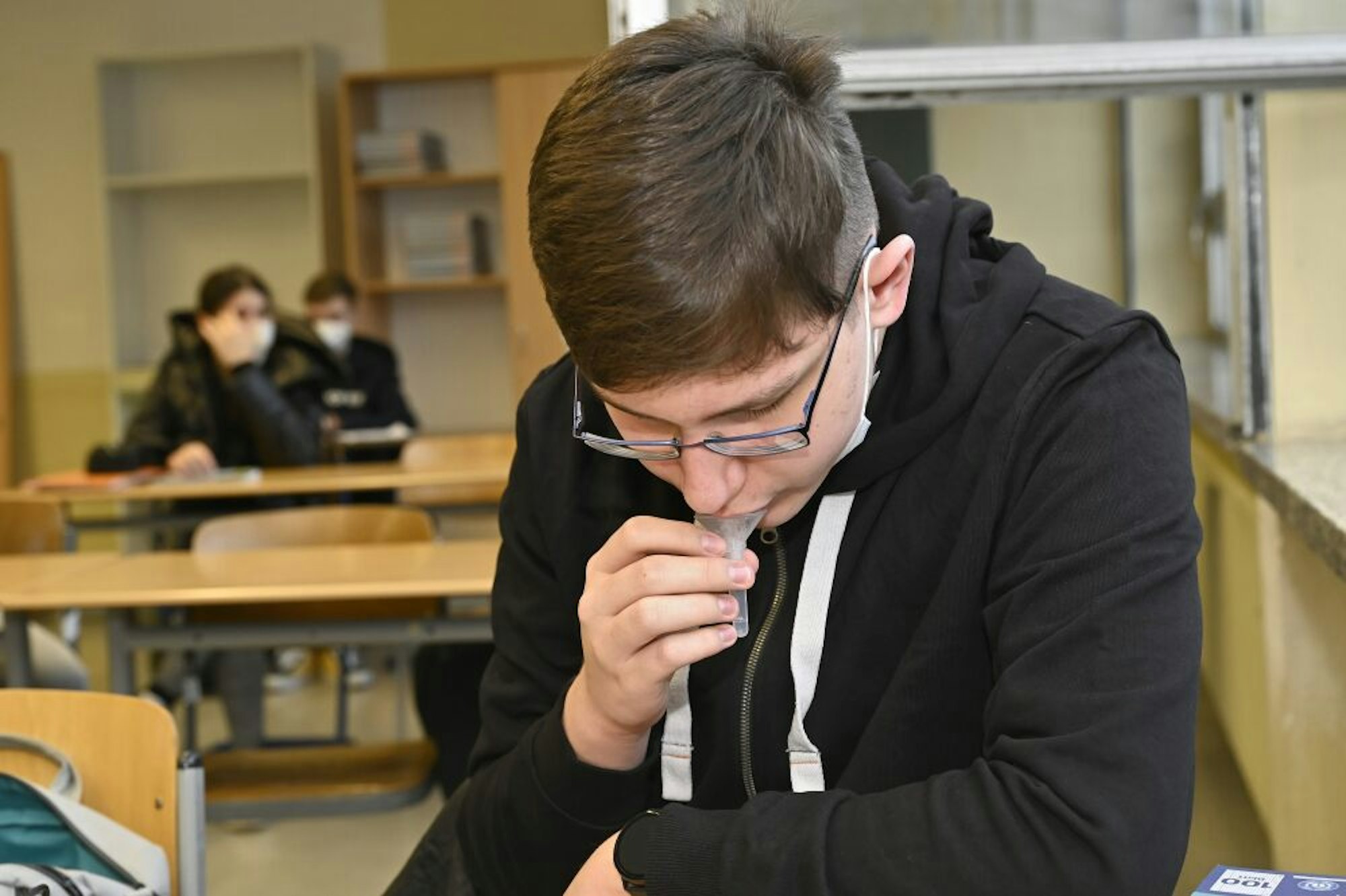 Acht der 13 Schüler lassen sich testen. Die Eltern mussten unterschreiben, dass sie mit dem Schnelltest einverstanden sind. Bei einigen ist die Mail vom Freitagabend einfach untergegangen. „Ich wusste nichts davon, sonst hätte ich mitgemacht,“ sagt ein Schüler. Eine Klassenkameradin sagt dagegen: „Ich möchte das einfach nicht. Ob sie befürchtet, im Falle eines positiven Ergebnisses stigmatisiert zu werden, dazu sagt sie nichts. Lehrerin Holdenried erklärt jetzt genau, wie der Test funktioniert, beim Verteilen hatte sie Plastikhandschuhe an. „Viel Glück und gut Spucken“, sagt sie zu ihrer Klasse. „Mit trockenem Mund ist das gar nicht so leicht“, findet Jonathan. Drei Tropfen müssen, nachdem eine spezielle Flüssigkeit ins Röhrchen dazugegeben wurde, auf den Teststreifen geträufelt werden. Dann fängt das bange Warten an, 15 Minuten lang. Am Ende können alle aufatmen: Kein Streifen zeigt ein positives Ergebnis. Der Geschichtsunterricht kann losgehen. (ub)