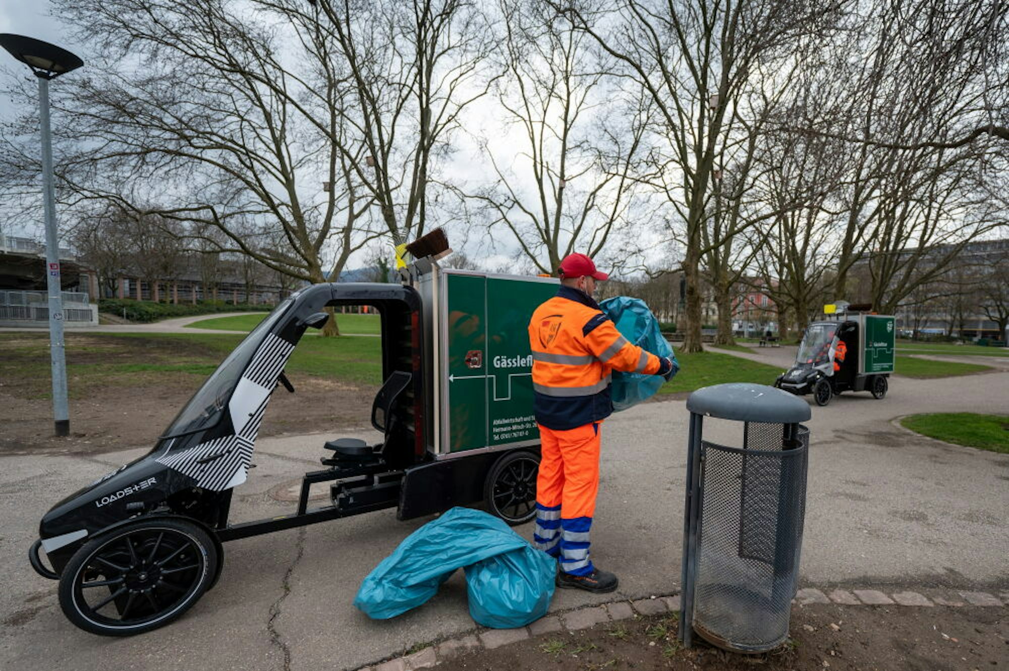 Die Mitarbeiter der Freiburger Abfallwirtschaft bei der Arbeit in einem Park. Die Verwaltung ist sehr zufrieden mit den Gässleflitzern.