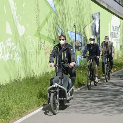Bergisch Gladbach – Also wirklich, diese „Gässleflitzer“ aus Freiburg als elektrische Lastenfahrräder zu bezeichnen, ist eine große Untertreibung. Sie sind sogenannte Cargo-(Fracht)-E-Bikes, ein Zwitter zwischen Rad, Tretroller und Auto. Sie haben vier Räder, eine Kabine für den Wetterschutz und können bis zu 200 Kilo transportieren. Und zwei von ihnen werden schon bald auf Bergisch Gladbachs Straßen zu sehen sein: als Teil der städtischen Mobilitätsflotte, unter anderen für die Kollegen der Abfallwirtschaft. Das ist seit Juni politischer Beschluss. Durchgesetzt von der Mehrheitskooperation aus Grünen, SPD und FDP gegen die CDU. 17.000 Euro investiert die Stadt pro Rad.