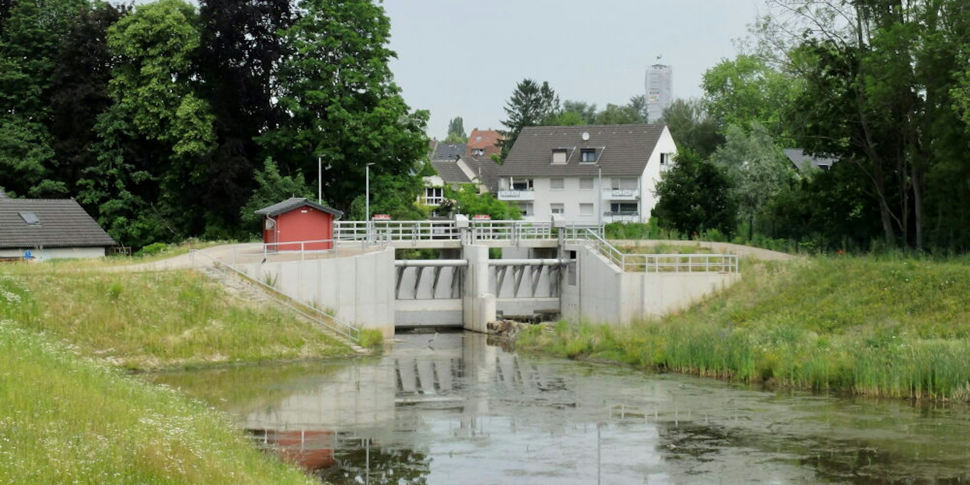 Das Wasserrückhaltebecken Kippemühle. Bei Unwettern wie im Juli 2021 wird die Schleuse geöffnet.