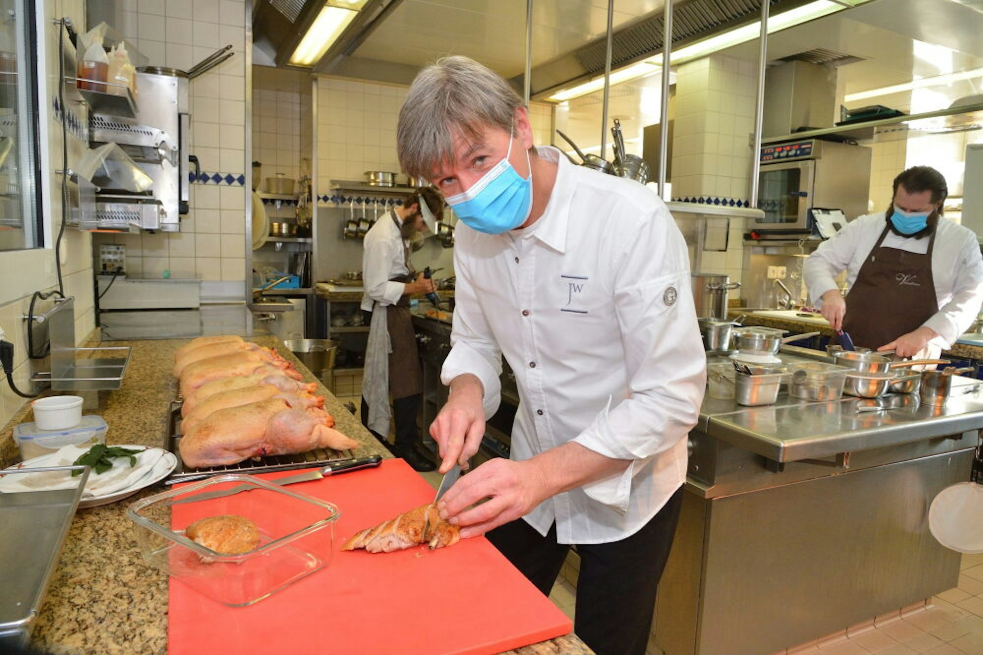 Bergisch Gladbach – Monatelang war sein Drei-Sterne-Restaurant Vendôme während der ersten Lockdowns geschlossen und Joachim Wissler zur Untätigkeit verdammt. Das will der Küchenchef nicht noch einmal erleben und vor allem seinem jungen Team nicht antun. Deshalb heißt es jetzt „Drei Sterne to go“ im Althoff Grandhotel Schloss Bensberg. Große Gourmetküche für den heimischen Esstisch ist das ehrgeizige Ziel. „Eine logistische Herausforderung ist das für uns“, sagt Wissler.