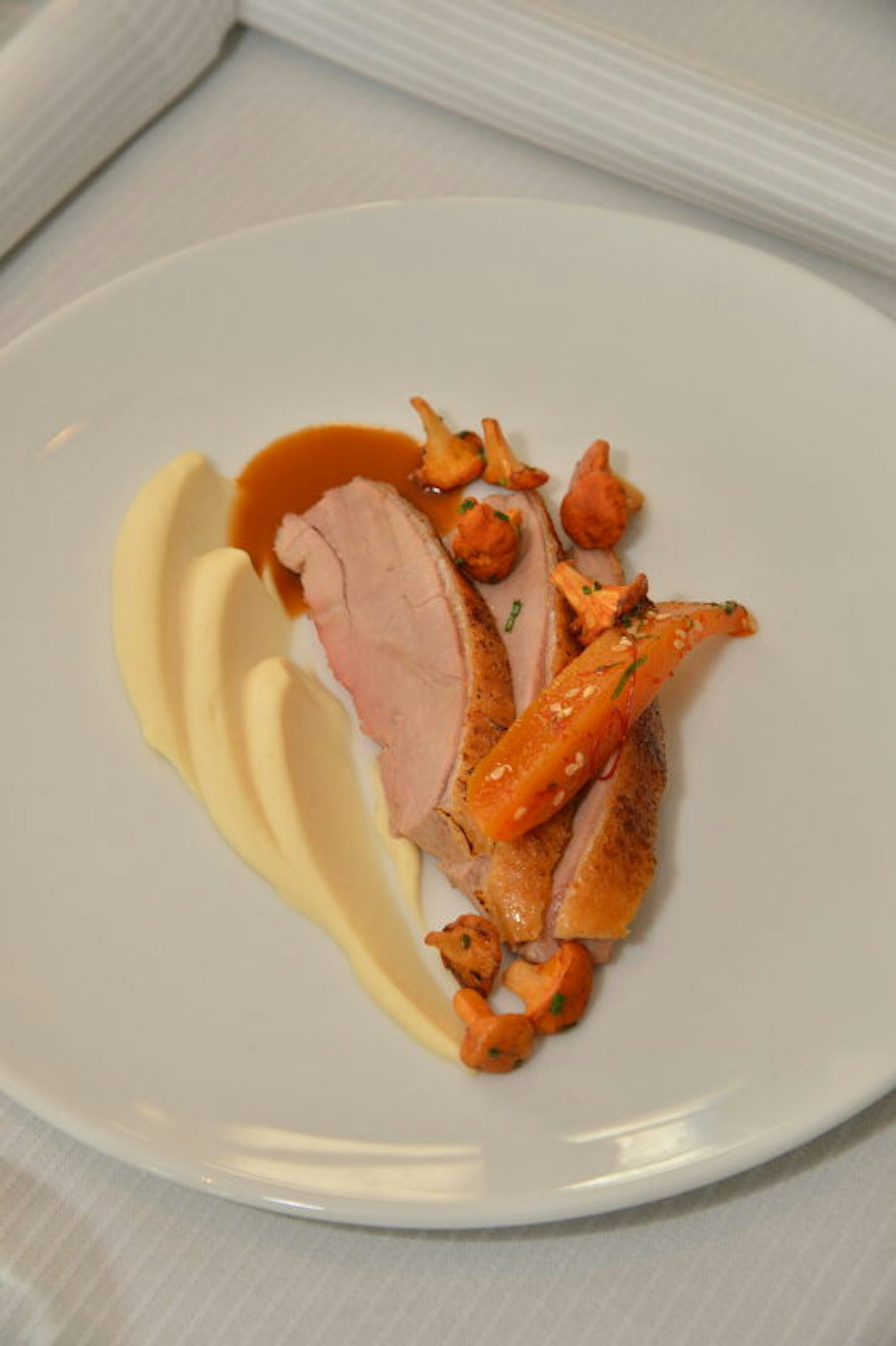 Rustikale Barbarie-Ente, Ochsenschulter, gegrillter Zander stehen auf der Karte, selbst gedrehte Thüringer Klöße (mit Trüffel), Runkelrübe und Selleriepüree, Kartoffel-Rahmgnocchi oder Oma Anna Lenas Käsekuchen.