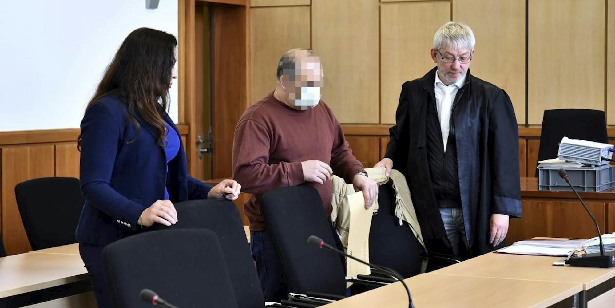 Der Angeklagte (m.) im Gerichtssaal von Hagen: Das Gericht verurteilte den Gladbacher zu lebenslanger Haft.