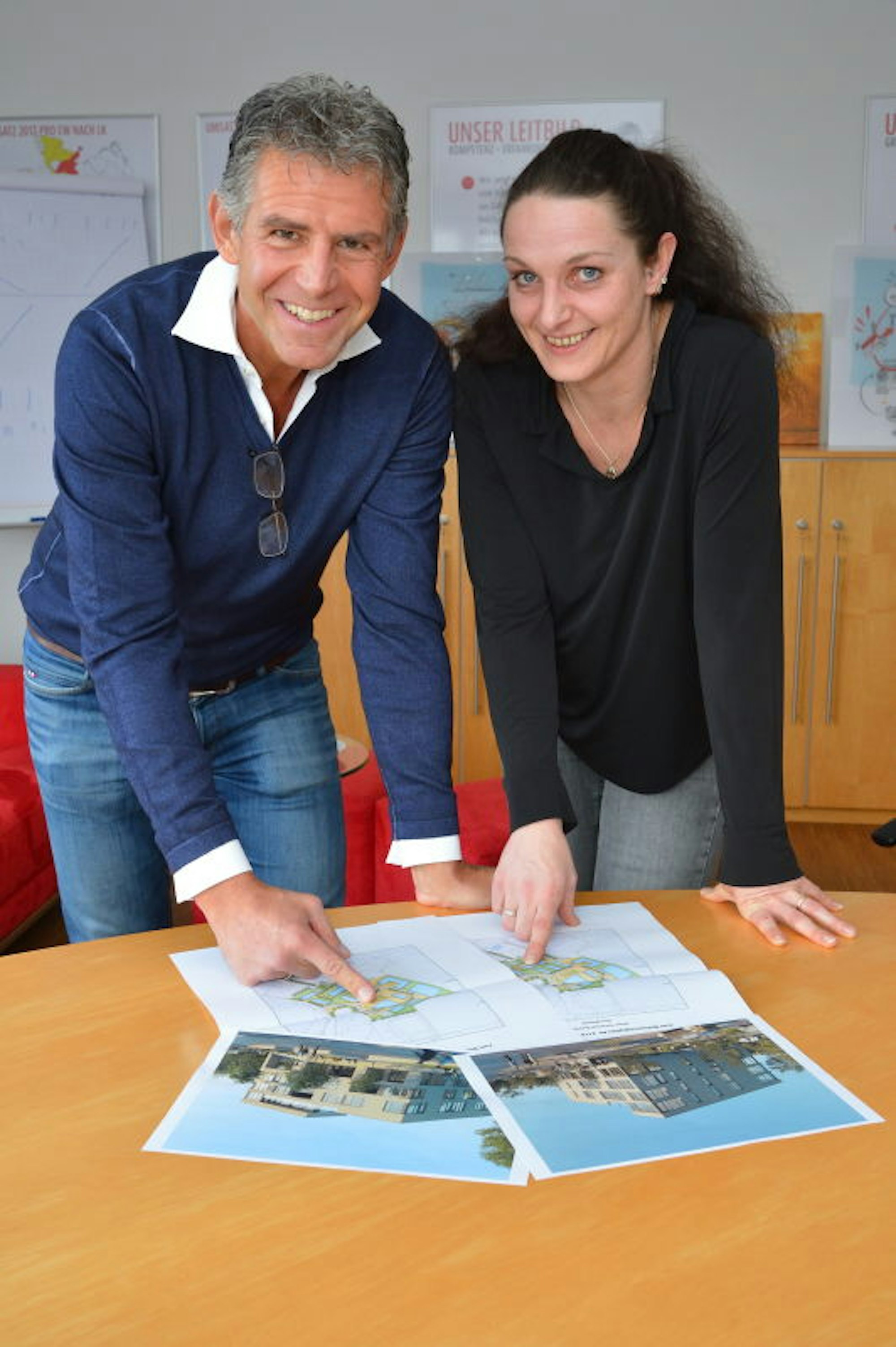 Isotec-Chef Horst Becker und Tanja Petrunic planen für die freie Fläche in unmittelbarer Nähe zur Gladbacher Innenstadt.