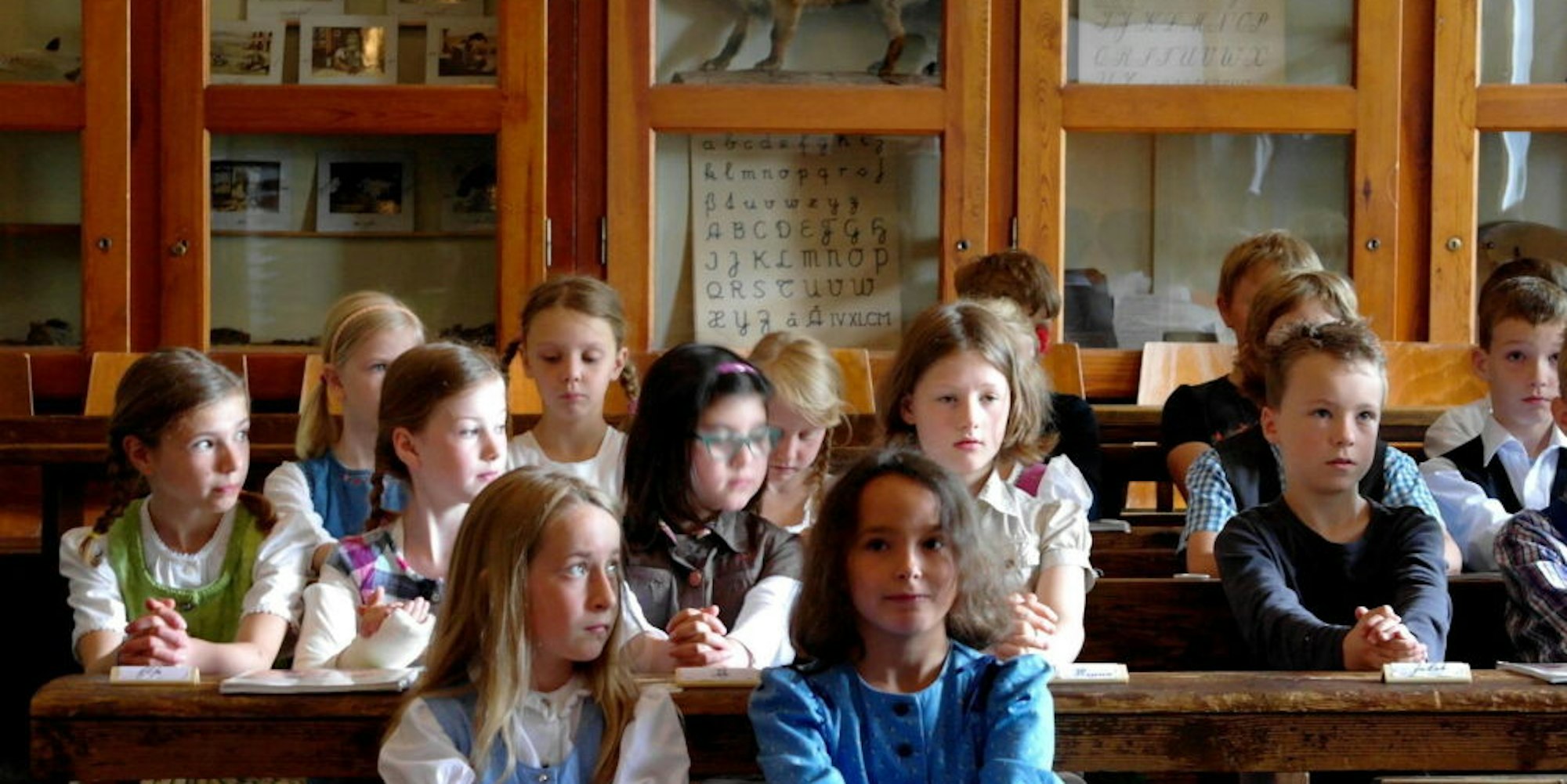 Auf die jungen Schülerinnen und Schüler von heute übt die Schule von einst erkennbar eine sehr große Faszination aus.