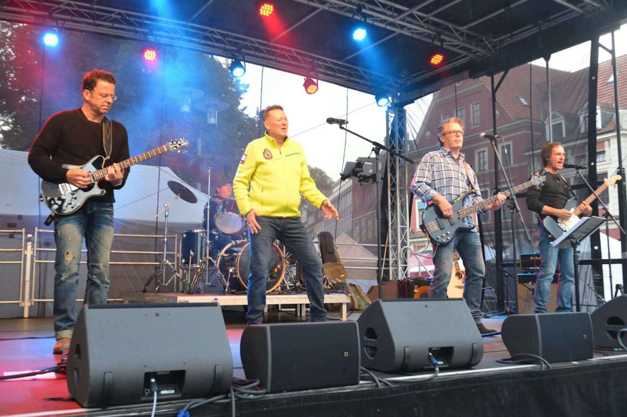 Ein abwechslungsreiches Musikprogramm gab’s auf der Bühne am Konrad-Adenauer-Platz, hier die Band mit Manfred Habrunner (r.).