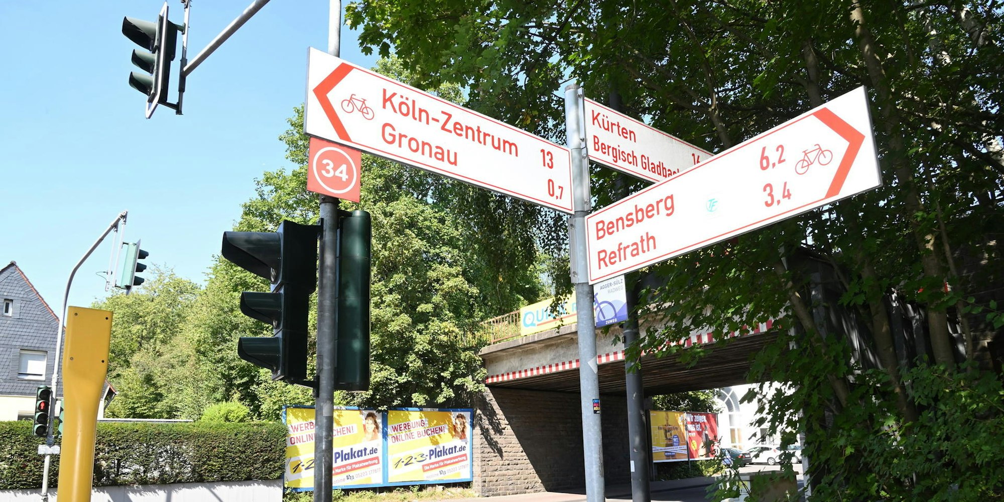 Der Refrather Weg mit der Bahnbrücke – kommen soll ein Radschnellweg nach Bensberg.