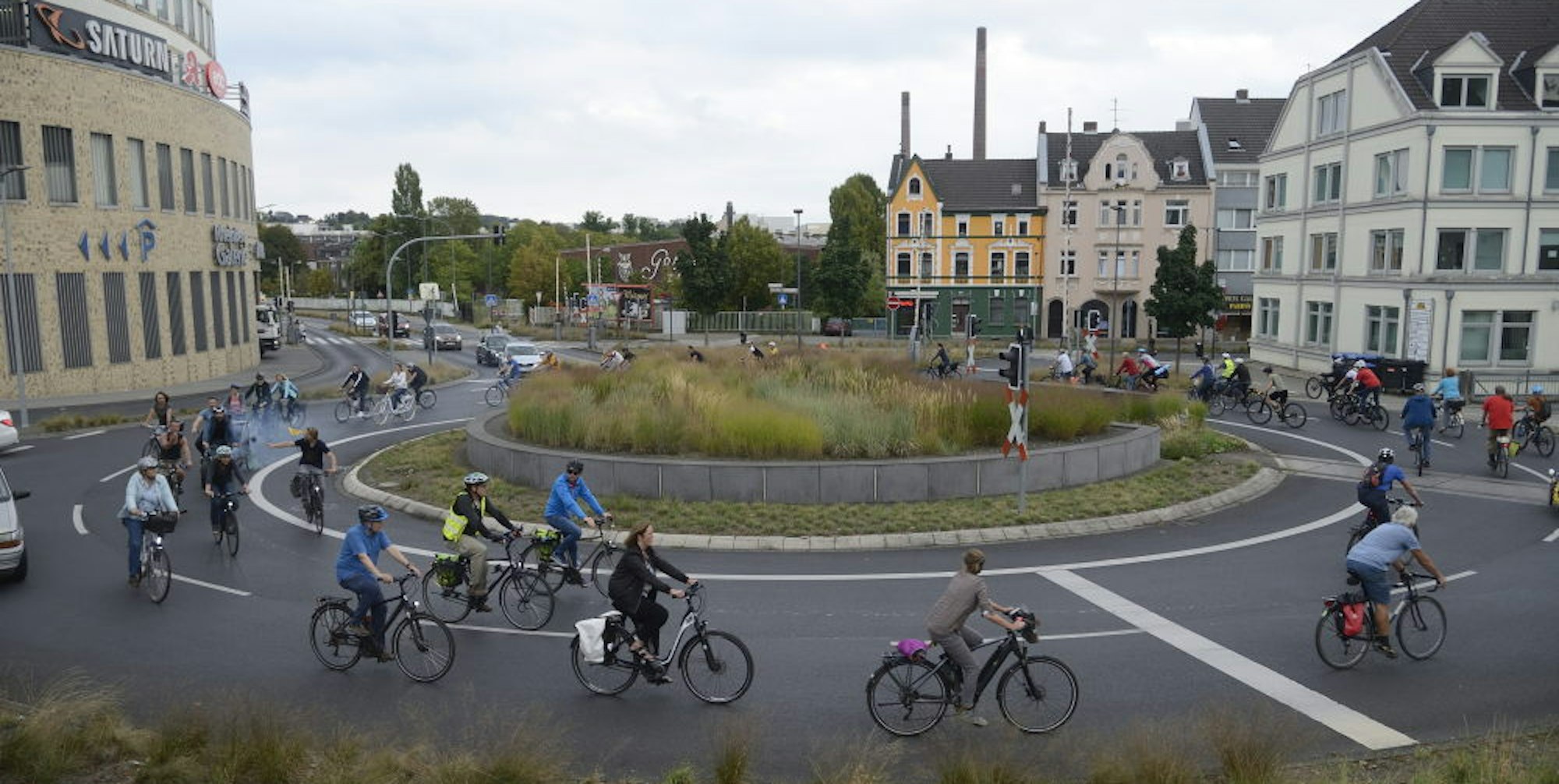 Im Driescher Kreisel geben die Radfahrer den Ton an: Zweimal im Monat findet die Aktion „Critcal Mass“ statt.