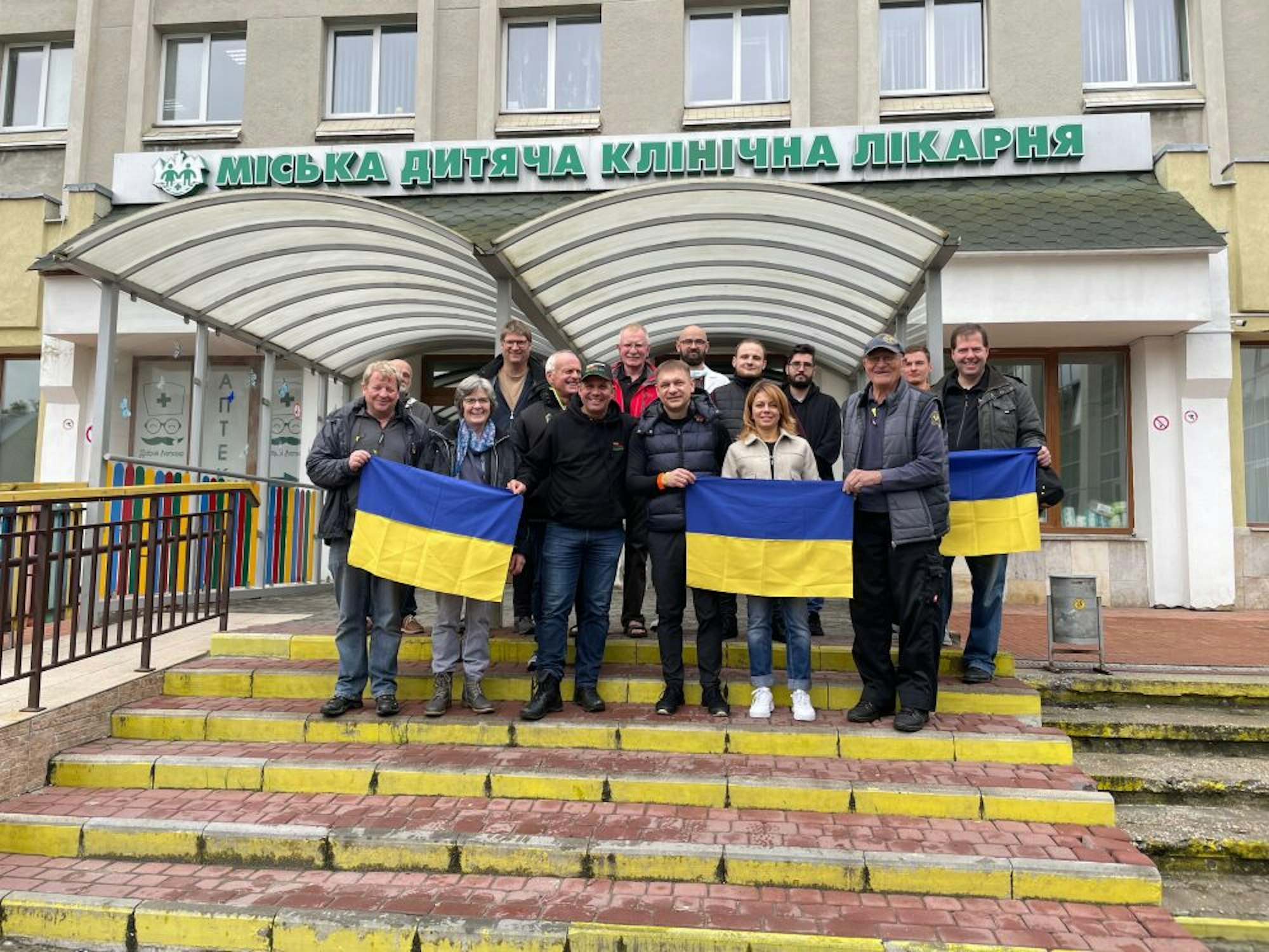Zeichen der Solidarität: Die Hilfstransporteure mit ihren Kontaktpersonen von der Kinderklinik in Lviv.