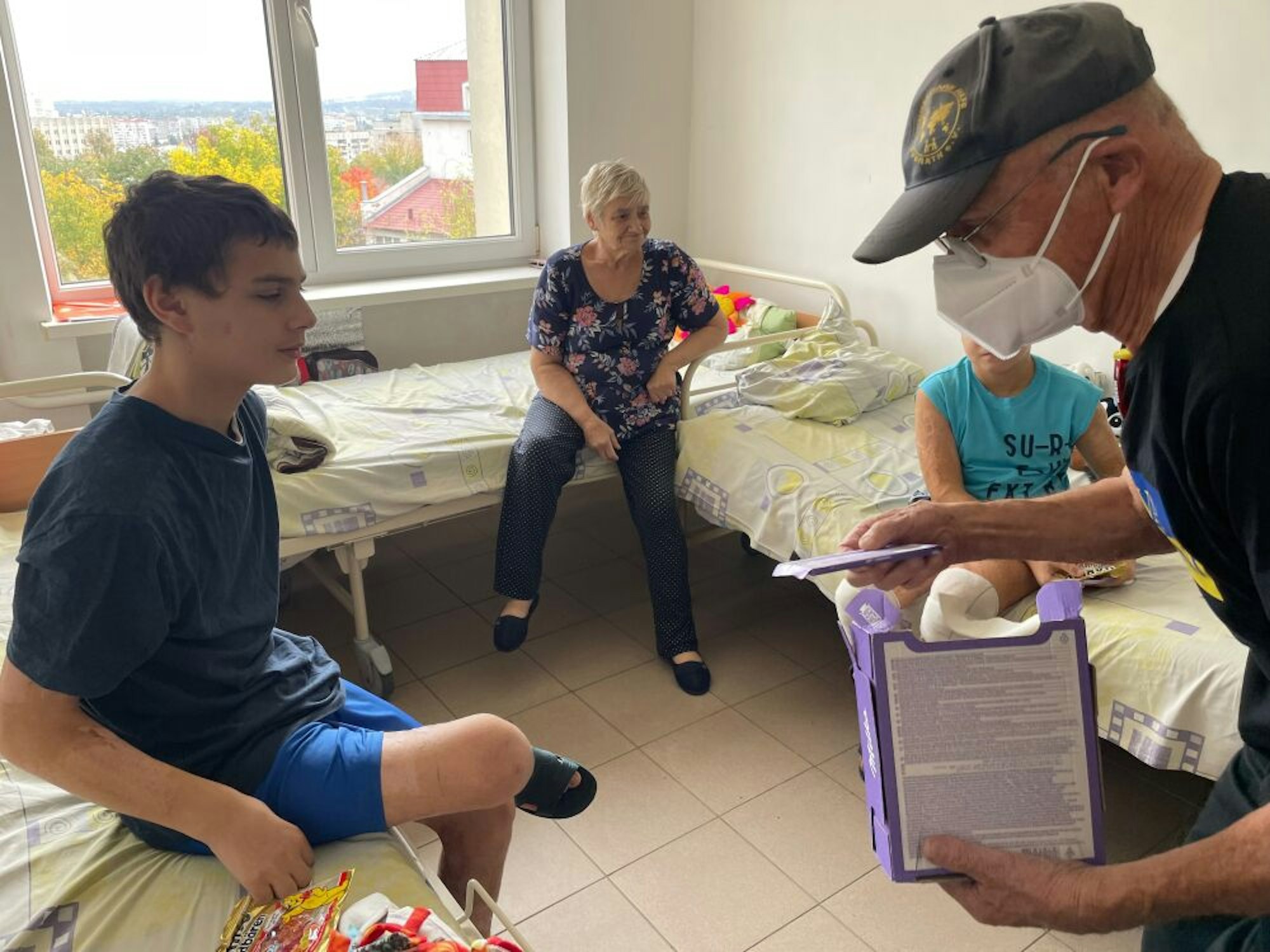 Für die Kinder der Klinik in Lviv hatten die Hilfstransporteure neben medizinischer Hilfe auch Süßigkeiten dabei, die auch Stefan Malczewski (r.) gern mit verteilte.