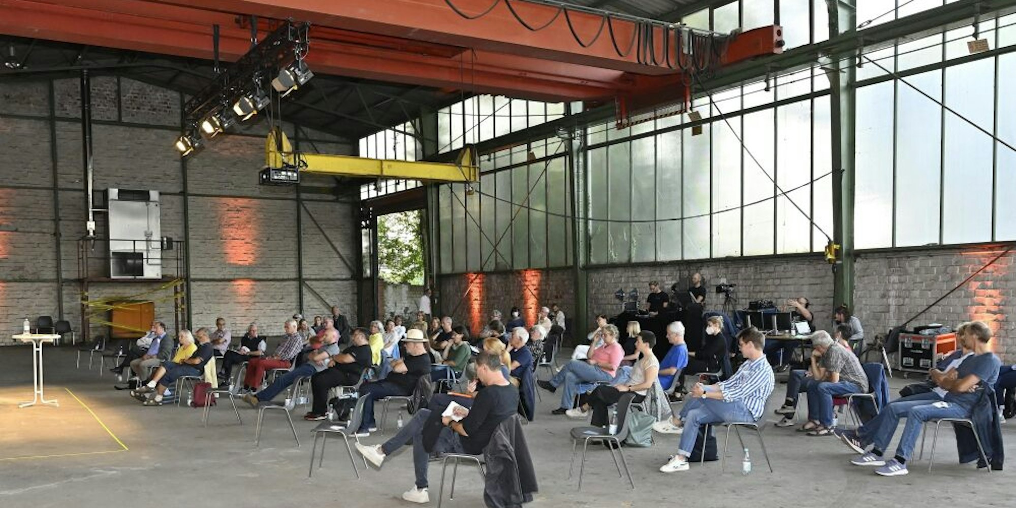 In der großen Industriehalle verfolgten rund 70 Zuhörer, was künftig auf Teilen des Zanders-Geländes entwickelt werden könnte. Im September und Oktober läuft die Bürgerbeteiligung.