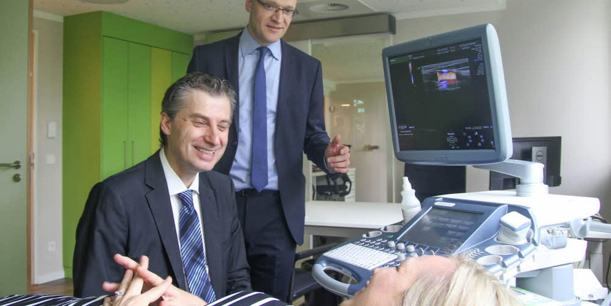 Die neuen technischen Möglichkeiten des Brustzentrums stellten die Mediziner Christian Rudlowski (l.) und Klaus Wasser vor.