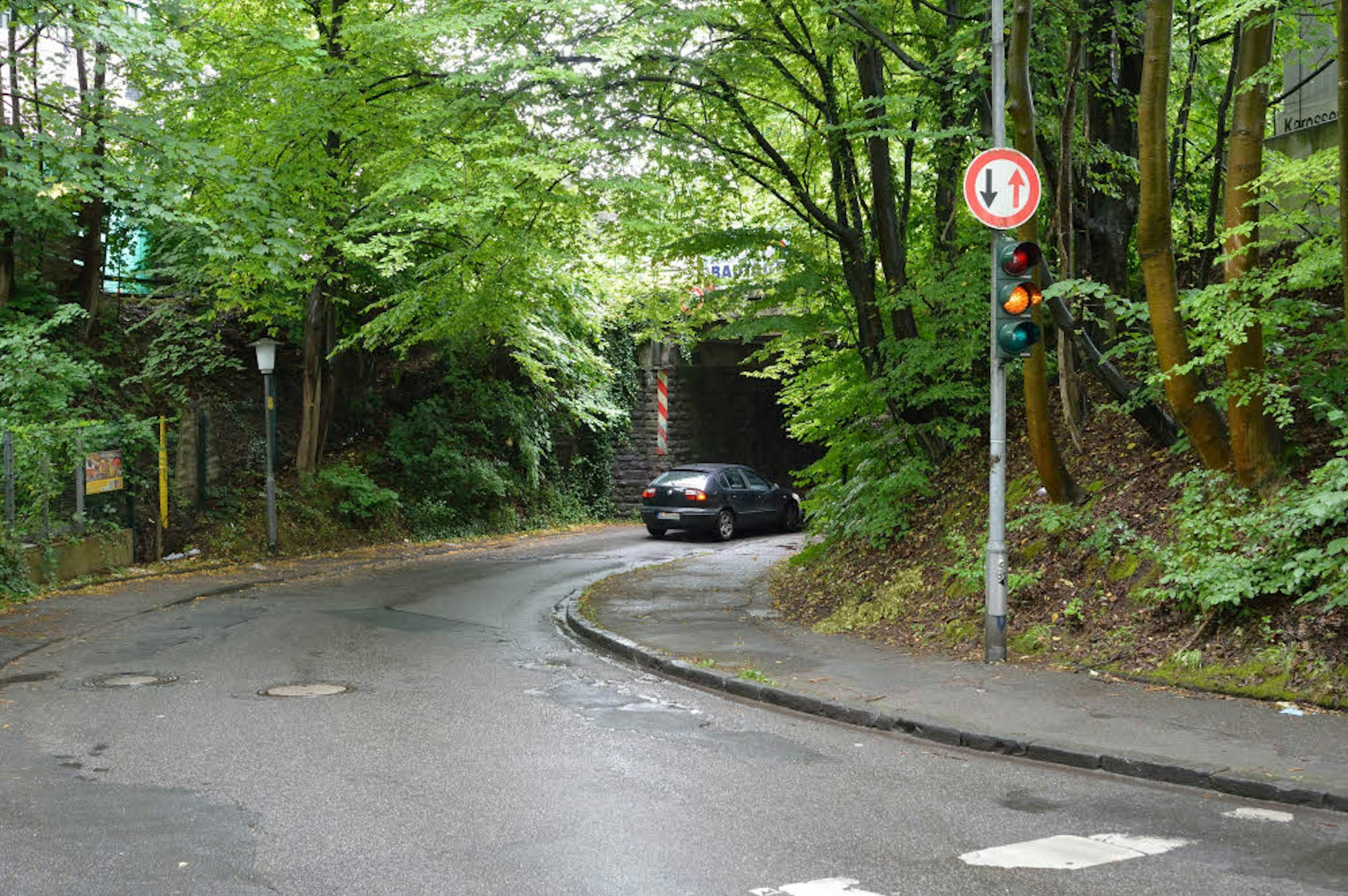 S-Bahn-Unterführung Buchholzstraße heute: Sie soll „aufgebohrt“ werden. Die neue Straße soll nach rechts abgehen.