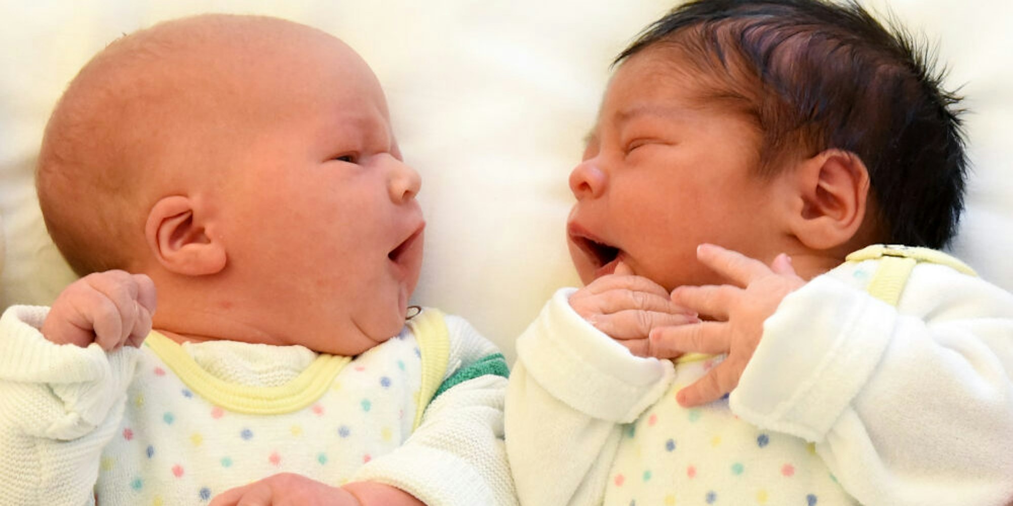 Schon richtig müde von Anstrengungen der Geburt: Diese beiden neugeborenen Babys haben gerade erst das Licht der Welt erblickt.